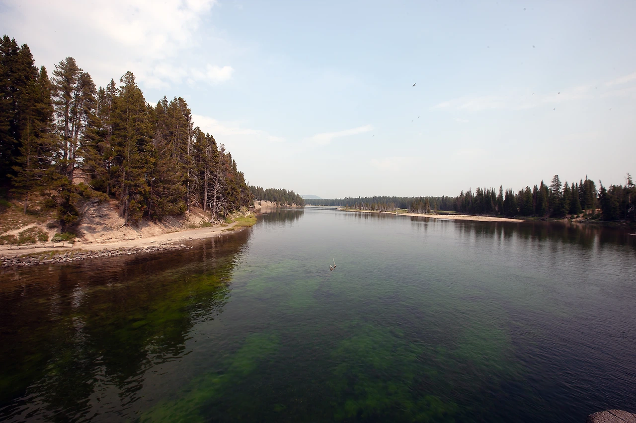 위에서 흘러내려 호수로 유입되는 옐로우스톤 강