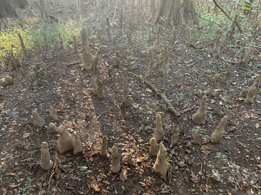 나무 밑동을 Cypress Knee라고 하는데 주로 늪지대에서 자라는 낙우송(Bald Cypress)의 뿌리에서 솟아나는무릎 모양의 돌기를 의미하며, 한국어로는 낙우송 무릎 또는 사이프러스 무릎 등으로 번역하는데 Knee가 뿌리