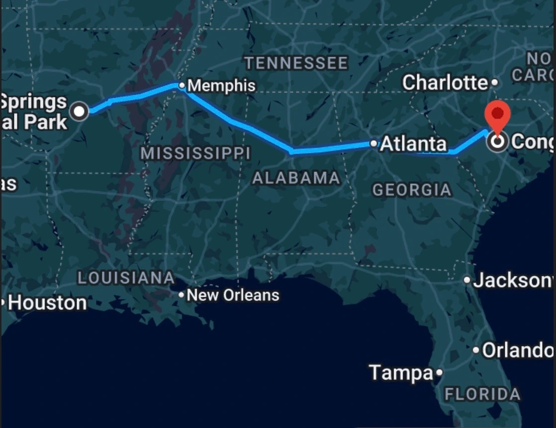 콩가리란 원래 이 지역에 살았던 인디언 원주민 부족으로 콩가리 국립공원은 약 41 제곱마일로 미국 63개 국립공원 중 일곱 번째로 면적이 작은 공원으로 별로 이렇다고 내세울만한 것이 전혀 없는 공원이다. 그래서 연간 방문객 수도 전체 순위는 밑에서 맴돌고 있다. 단지 미국 동남부 지역에서 가장 오래된 저지대 숲(floodplain forest)을 보호하기 위한 목적으로 지정된 국립공원이기 때문에 다른 국립공원처럼 눈에 확 띄는 대표적인 주자가 없다. 하나를 꼭 집어 말하라고 하면 있기는 있다. 바로 모기다. 저녁에 캠핑장 옆에 있는 Visitor Center 파킹장에서 밤을 보내려고 했더니 달려드는 모기떼에 놀라 결국 공원을 떠나 다른 곳에서 하룻밤을 보냈다. 여기서 말하는 저지대 숲이라는 게 알고 보니 우천 시 강물이 불어 침수되는 낮은 지대에서 조성된 나무숲을 말하는 것으로 사우스캘로나니아에서는 여기 콩가리 강유역이 유일하다고 한다.