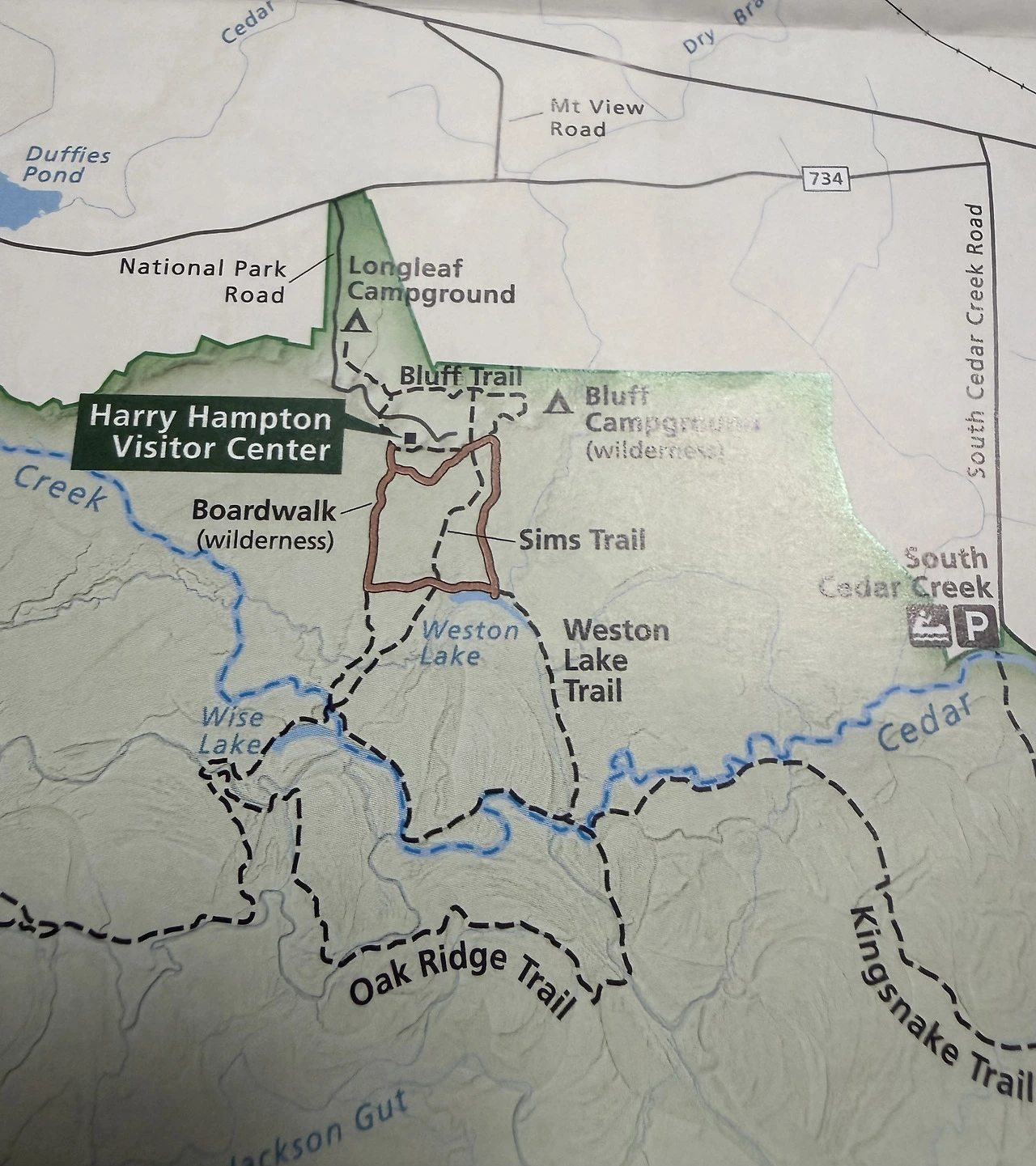 이런 트레일 말고도 카약이나 카누를 빌려 잔잔한 Cedar Creek에서 자연의 소리를 듣는 뱃놀이를 즐길 수도 있다고 하는데 뱃놀이에는 별로 흥미가 없어 접었다.