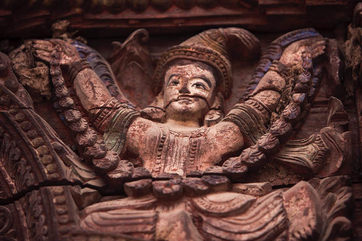 사원 현판 사진인데 나무로 정교하게 조각되어있다.