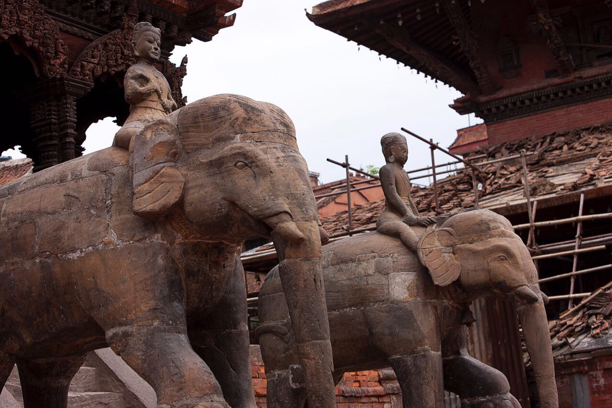 코끼리 석상들. 흰두교에서 황소만큼이나 신성시되는 코끼리로 가네샤는 인간의 몸에 코끼리 머리를 한 힌두교의 신으로 지혜와 재산을 관장하는 신이다.