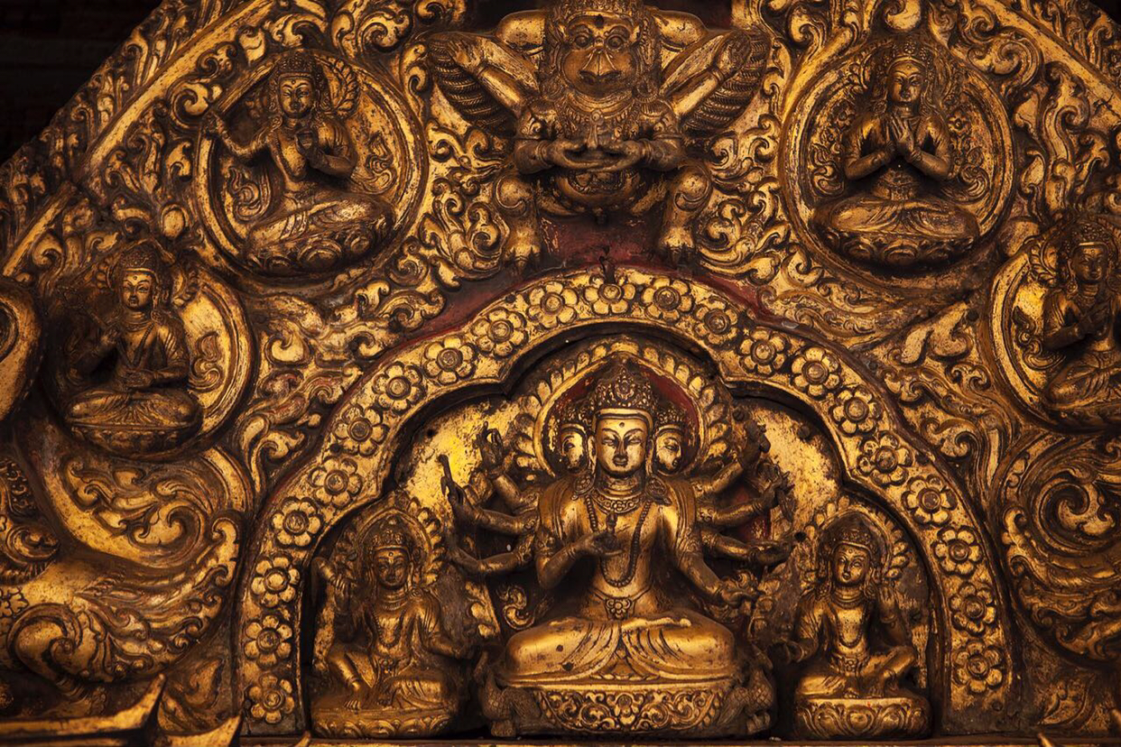 사원 현판까지 금색 청동으로 조각되어 있었다