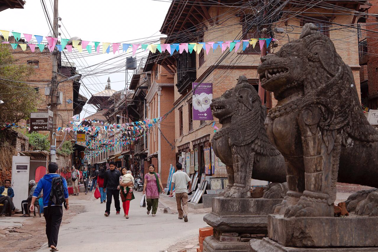 파탄 왕궁의 중심지를 보고 이 대로를 따라 지나가면 위 사진처럼 상점이나 주거지가 들어서 있다. 그 중간 중간에