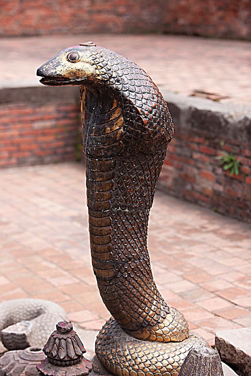 수조 중앙부에는 청동으로 조각한 똬리를 폼나게 틀어올린 코브라가 수조 보호신처럼 경계를 하고
