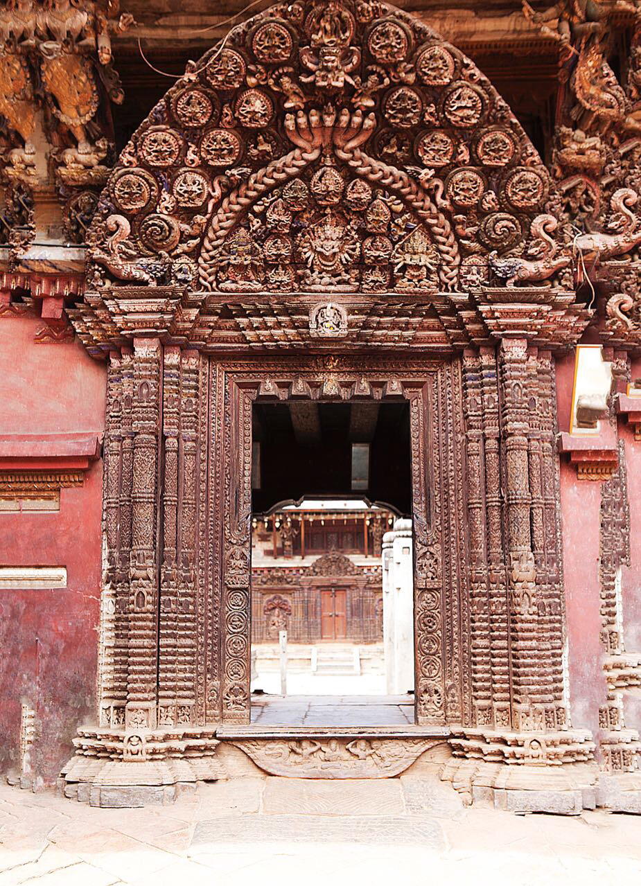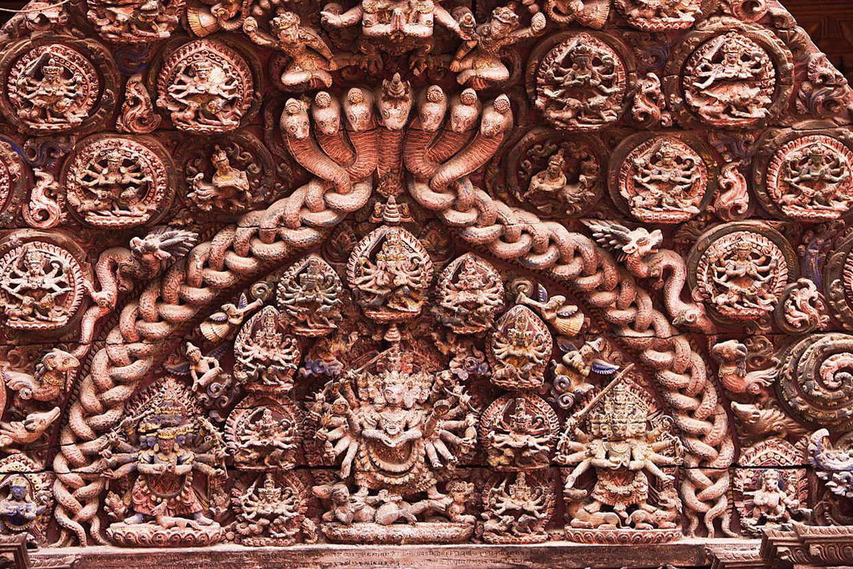 이 문 현판의 조각상이 박타푸르 전체 예술품중에서 최고라는 찬사를 받는다고 해서 이를 확대해보면