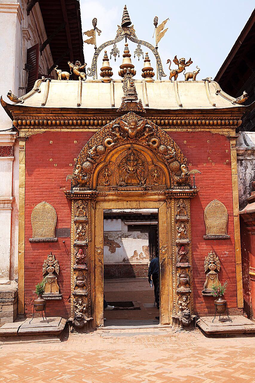 그 좌상 건너편에는 GOLDEN GATE( 본토말로 Sun Dhoka)문이 있는데 1754년 건립되었다고 한다. 이문은 왕궁 안뜰로 들어가는 문이다.