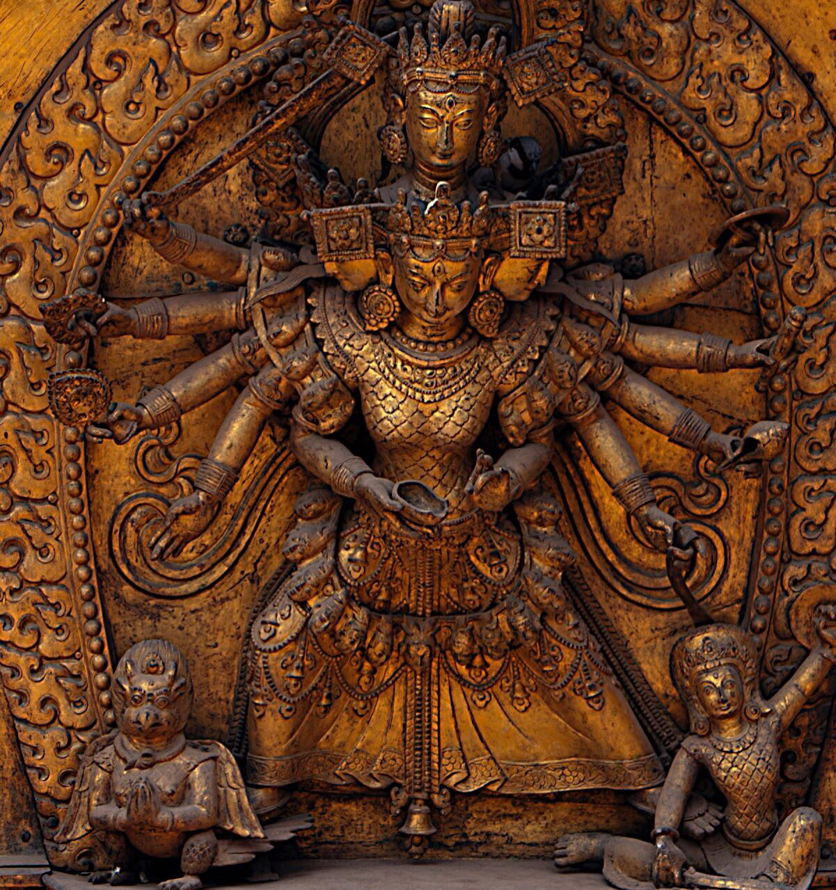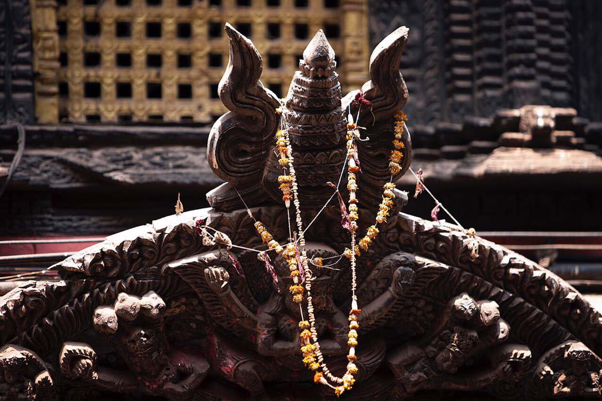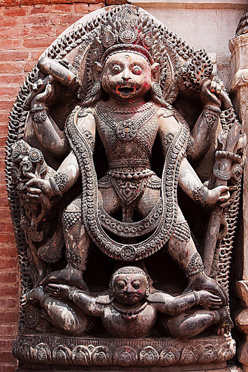 머리 4개에 10개의 팔을 가진 탈레주 바와니(Taleju Bhawani)여신이 새겨져 있는데 여신은 당시 말라왕국의 수호신으로 숭배되었다고 한다. 다른 하나는