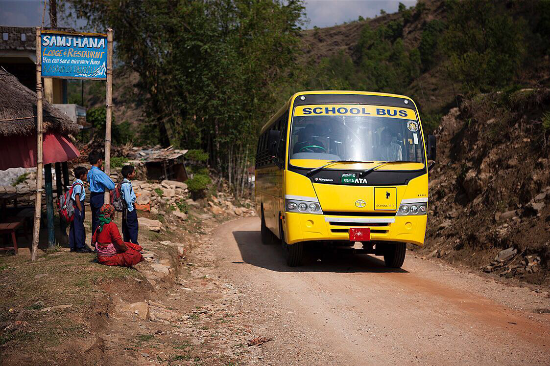 시골 오지이다보니 여기저기 농가들이 흩어져있어 스쿨버스가 한바퀴돌면서 학생들을 실어 나른다. 이 버스가 네팔와서 내가 본 버스 중에 최상의 컨디션이다.