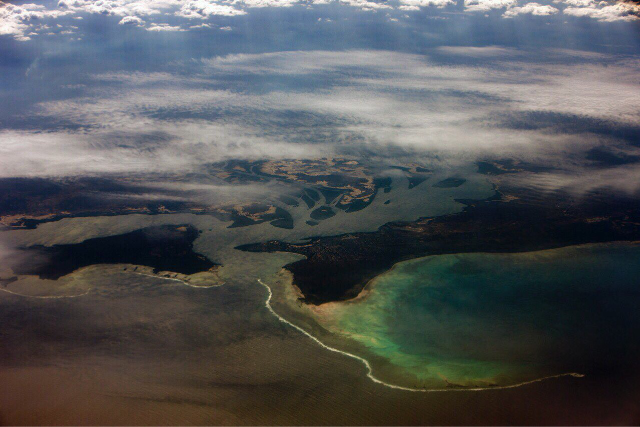배를 타면 다르에스살람에서 잔지바르까지 1시간이상 걸리는데 경뱅기로 20분만에 날아 들어왔다. 승객 10명중 9명은 검은 차도르를 걸친 현지 아지매들이고 나혼자 관광객이다. 머리카락 길이로 판단하면 내 멀가닥도 길어 아지매 수준에 들어간다. 버릇대로 경뱅기에서 항공사진을 몇 장 찍었다. 낮게 뜨서 착륙할 때 섬 주변을 잡았다.