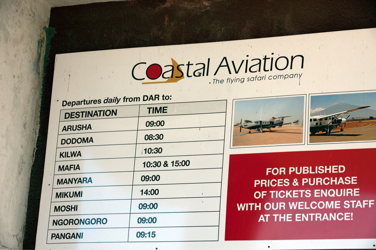 경비행기의 인근 도시 운항 시간표. 내가 잔지바르 다음으로 갈 행선지 Moshi도 있고 사파리 투어를 할 응고론고로(Ngorongoro: 마사이족들의 집단 거주지)와 Arusa도 보이고 탄자니아 수도인 Dodoma도 간다. 전혀 예상하지 못한 교통편으로 한번 생각해봐야겠다.