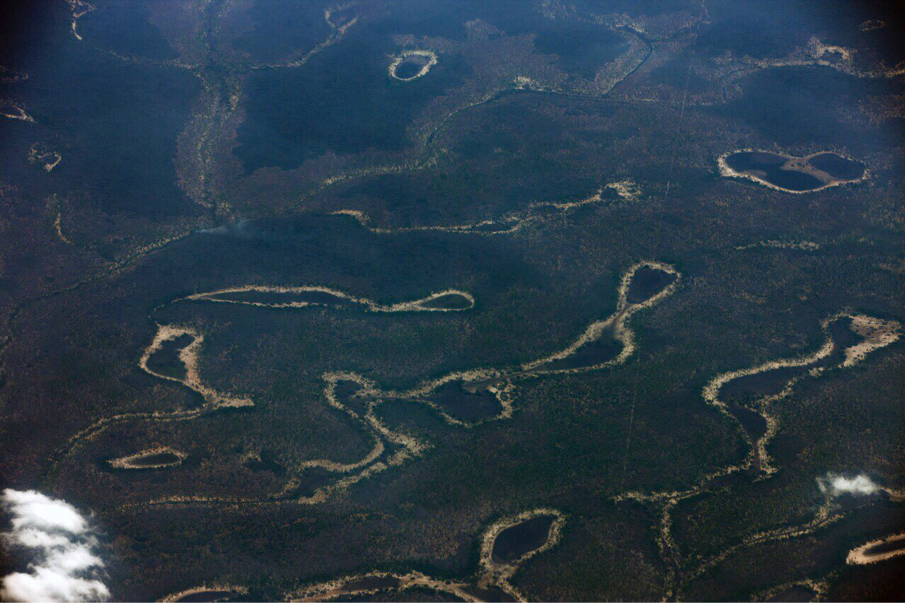 이건 거의 버릇이다. 비행기타면 일단 무조건 창가로 좌석을 달라고 한다. 구름이 세상 아래를 이불퍼럼 덮지 않으면 그리고 운좋으면 카매라로 지상의 구조물이나 자연물을 잘 잡으면 훌륭한 추상화를 얻을 수 있다. 비행기에서 사진찍는게 쉽지가 않다. 왜냐하면 유리창이 이중으로 되어있어 빛이 굴절되어 정상적으로 통과할 수 없기 때문이다. 비결은 성능좋은 렌즈로 일단 구도 위주로 여러 장 찍어 놓고