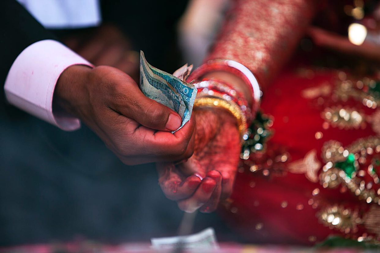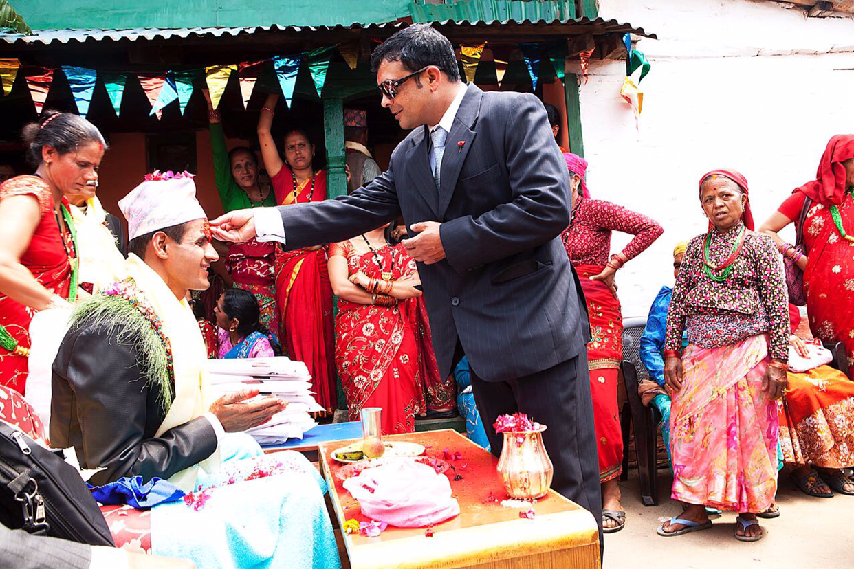 신랑집에 도착하니 벌써 사람들로 떠들석하다. 신랑이 잘 차려입고 앉아서 하객들 축하와 부조를 받고 있다. 하객들이 빨간 물감을 신랑 이마 중앙에 하나씩 붙여주고 봉투나 선물을 전달한다. 빨간 물감같은 것을 여기서는 <띠까>라고 한다. 그걸 조금씩 신랑이마 중앙에 붙여준다. 축복의 의미이겠지만 이 사람 저 사람들이 전부 다 붙여주니 그 무게로 덜렁덜렁거린다.