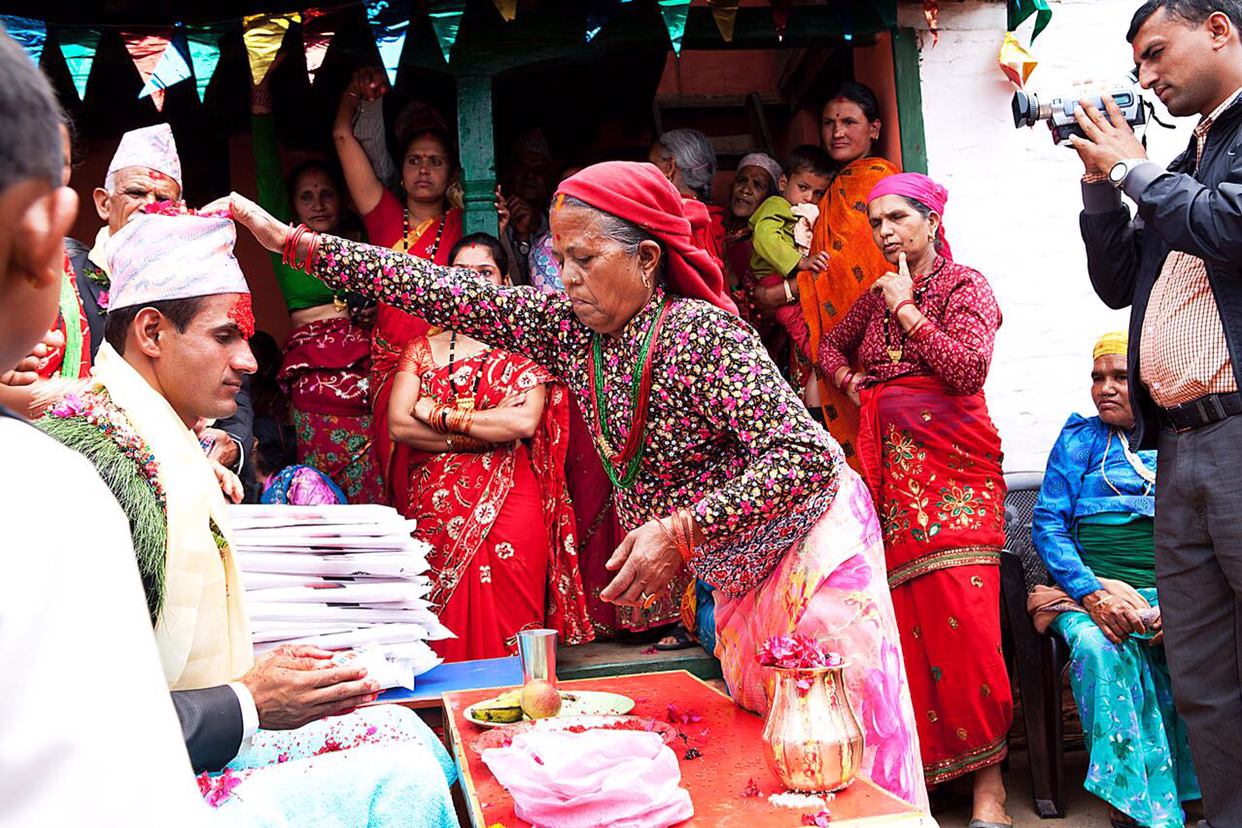 네팔 전통 혼례식은 5일간 한단다. 잔치를 5일간 한다는 소리다. 오늘이 혼례식만 올리는 날이지 신랑 신부 각각의 집에서는 이미 사나흘전부터 축제분위기로 마을 사람들이 모여 마시고 춤추고 즐겼다는 소리다. 소위 말하는 중매결혼으로 신부는 여기서 조금 떨어진 포카라에 사는데 혼례식은 신부집 근처에서 한단다. 포카라에서 하는 오늘 잔치 비용은 몽땅 신부 아부지가 쏜다.