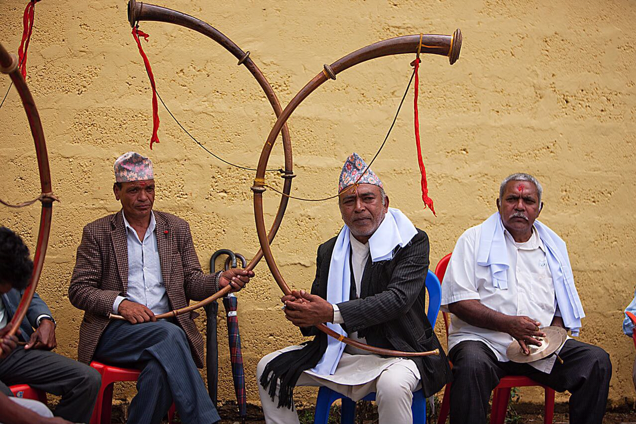 윗채에서는 우리식으로 말하면 사물놀이패들이 네팔 전통 악기로 흥을 돋우고 있다. 활처럼 둥글게 휘어진 악기가 고음을 신나게 깔아 주고나면 우리식으로 보면 태평소나 장구 북등 타악기가 함께 어우러져 약 2분정도 연주하다 좀 쉬다가 또 다른 곡을 연주하곤한다.