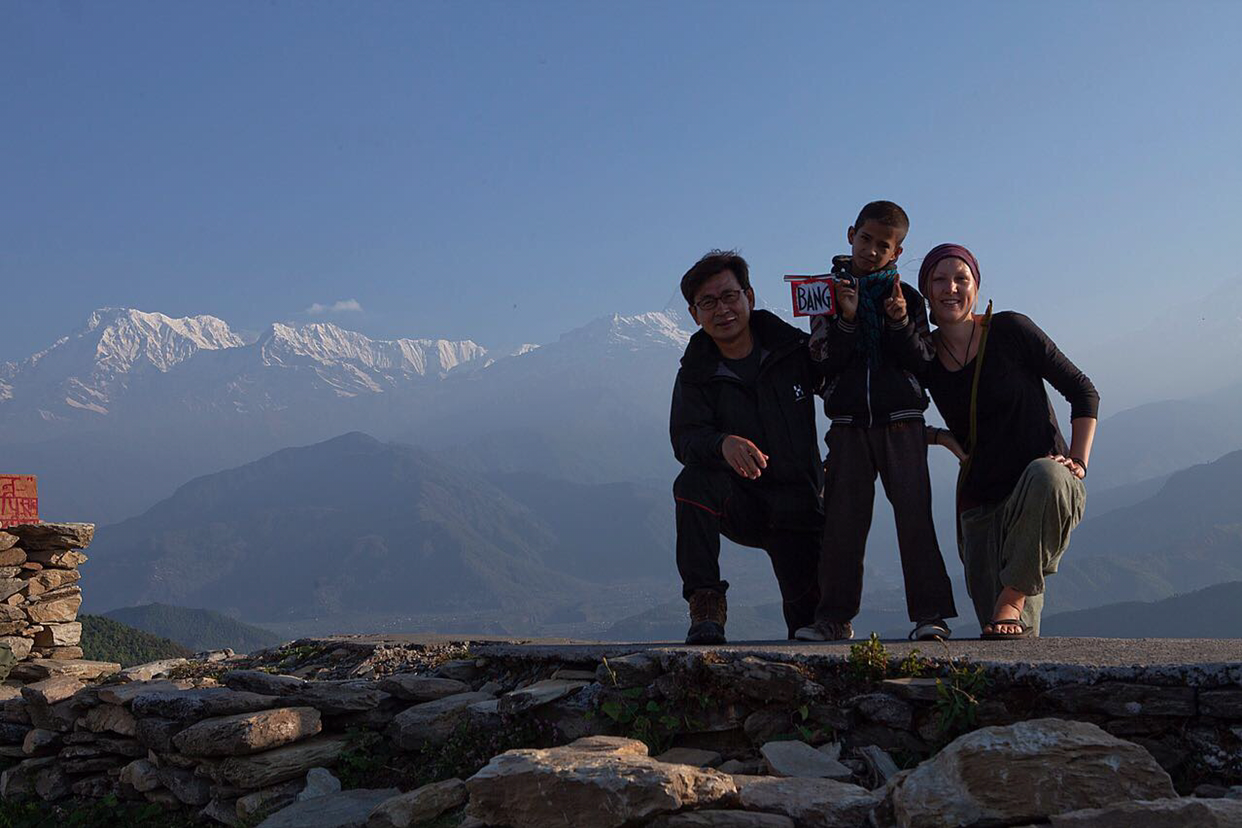 산토스는 오늘 아침도 어김없이 밀크티를 팔고 있었다. 러머스는 보이지 않았다. 어제 결혼식장에서 만난 독일 처자 LINA도 오늘은 일출보러 올라 왔기에 산토스와 함께 기념 사진도 찍어 주었다. 독일 처자는 독일에서 올해 대학을 졸업했는데 취업을 하지 못해 대신에 배낭 여행을 하다가 네팔에 들어와 근 한 달동안 이 마을에서 지내고 있다고 한다.