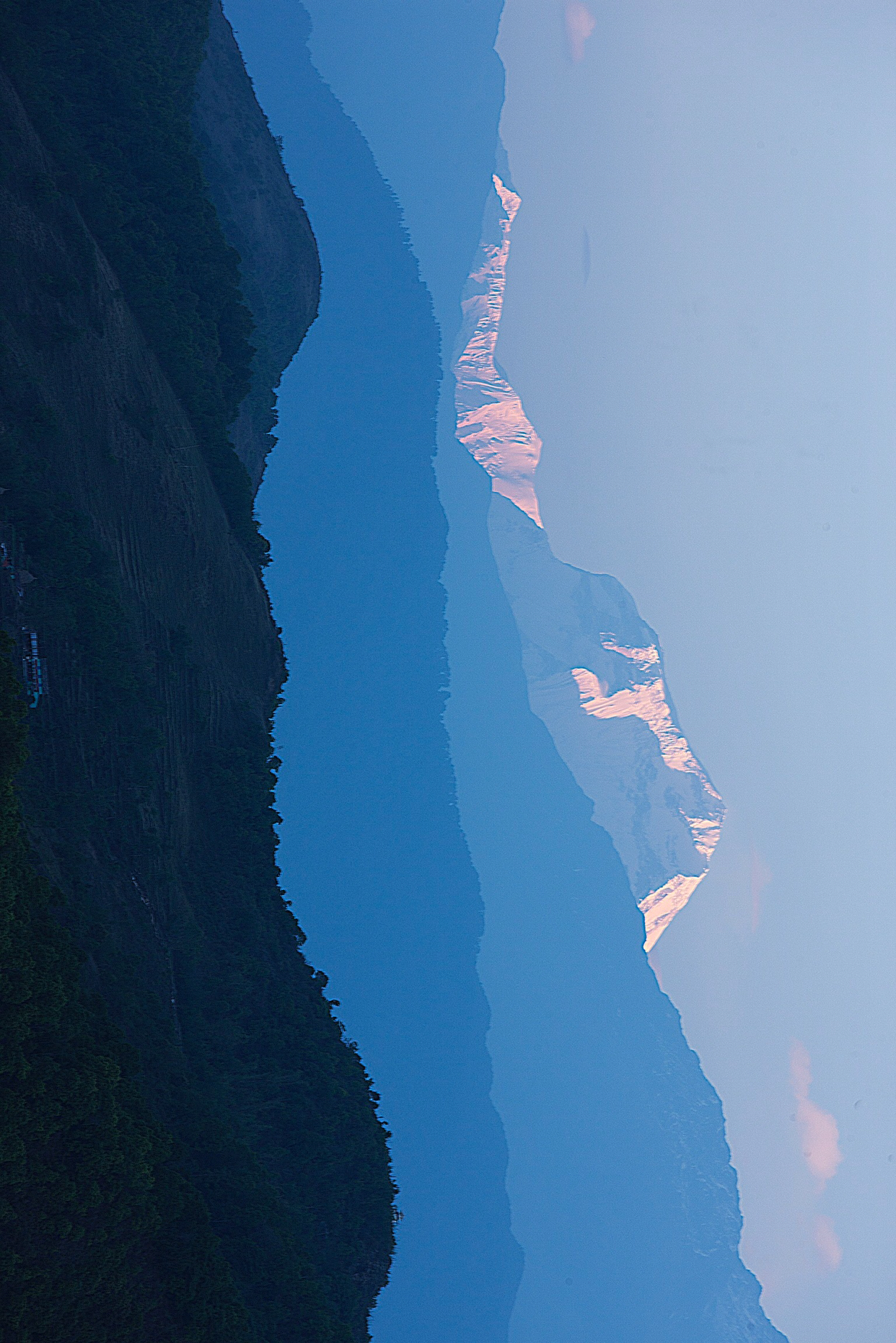 그러나, 마차푸차르는 아직 여명에 쌓여있다.