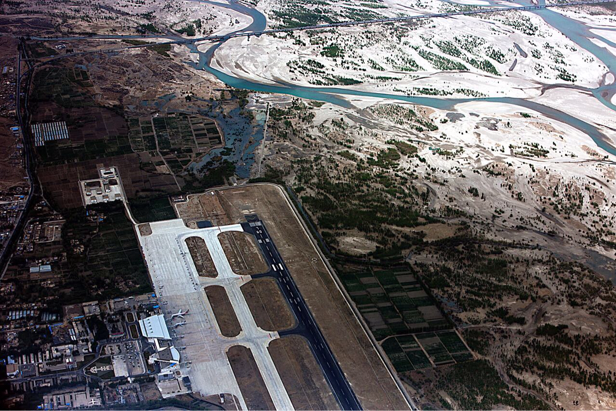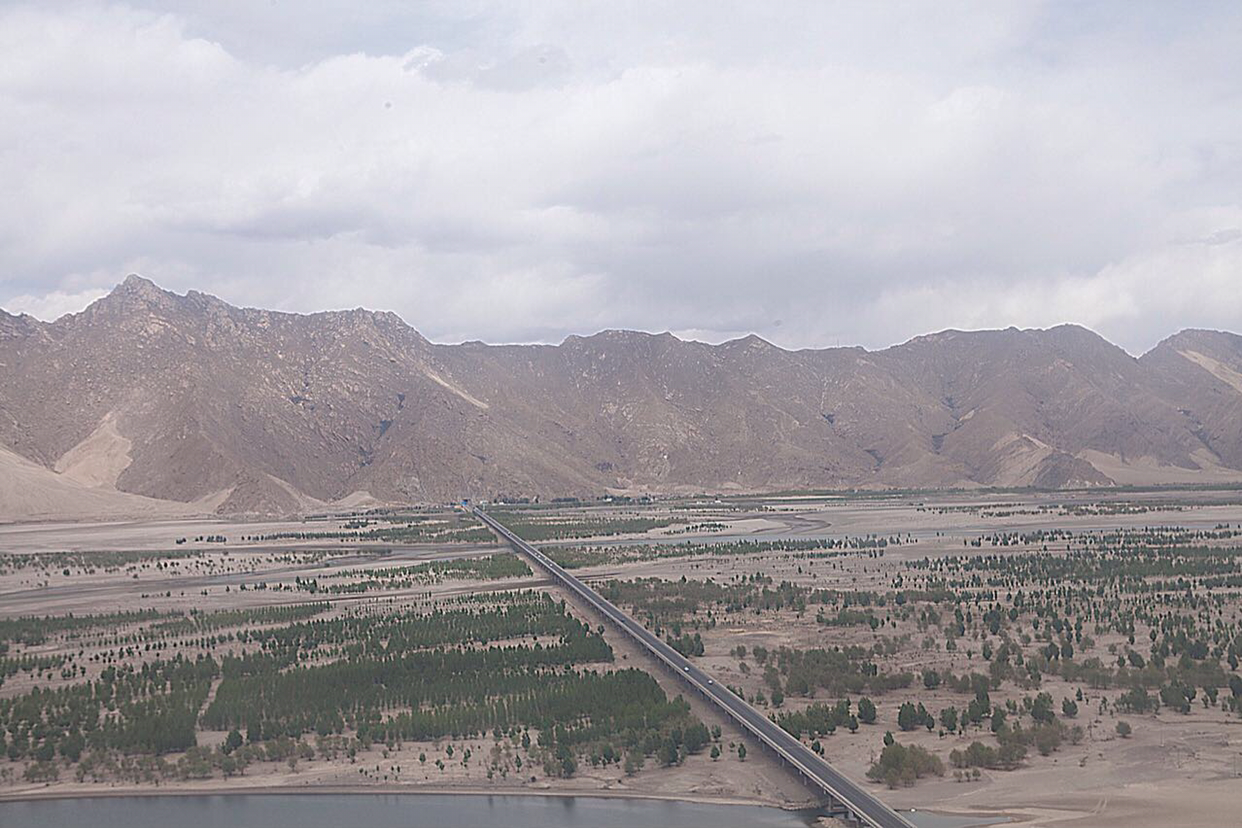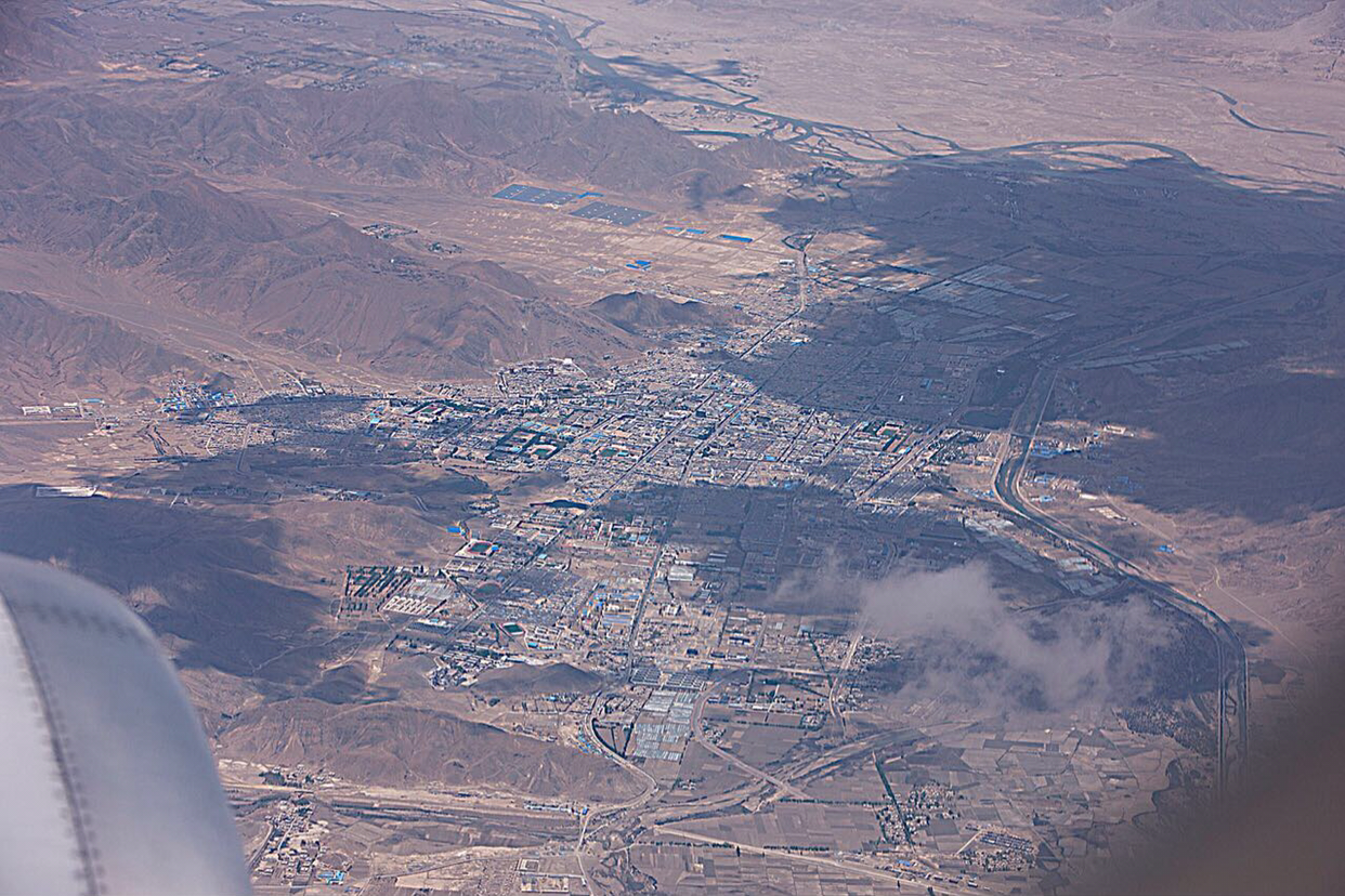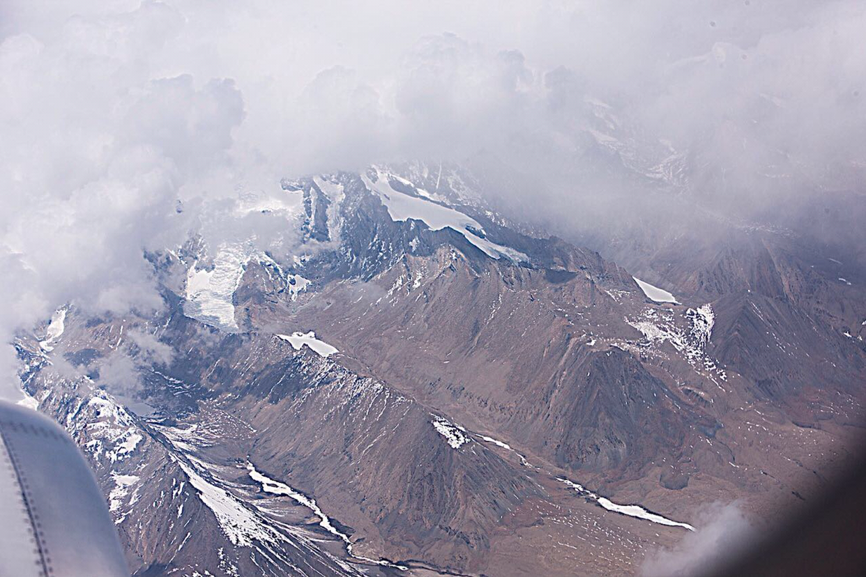비행기가 그렇게 훌쩍 히말라야산맥을 넘었는지 갑자기 산색깔이 달라진다. 티벳땅으로 들어 온것 같다. 산색깔이 짙은 갈색으로 변하면서 산들의 높이도 많이 낮아진것 같다.