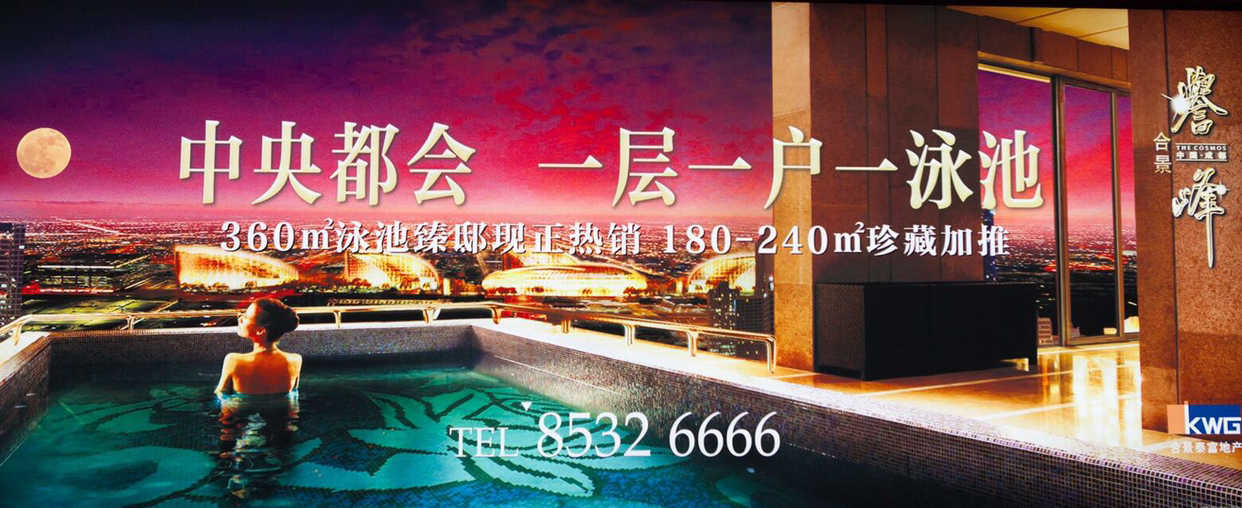 시안행 비행기를 기다리면서 공항안을 한번 쭉 돌아보니 제일 눈에 많이 띄는 광고가 호화아파트나 전원주택에 관한 광고이다. 수영장이 딸린 아파트나, 미국식으로 골프코스딸린 전원주택, 유럽풍 주택등등 그 광고가 다양하다.