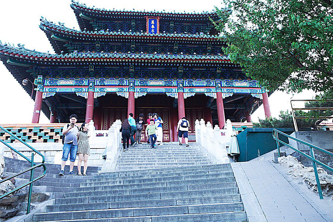 원래 평지인 이곳을 인공으로 만든 산으로 높이는 108미터이지만 자금성 근방에서는 제일 높기 때문에 올라 오면 좌우 앞뒤 사방으로 시야가 확트인다. 이 야산에 정자가 5개있는데 제일 높은 곳이 만춘정(万春亭)으로 전부 여기서 바글거린다.