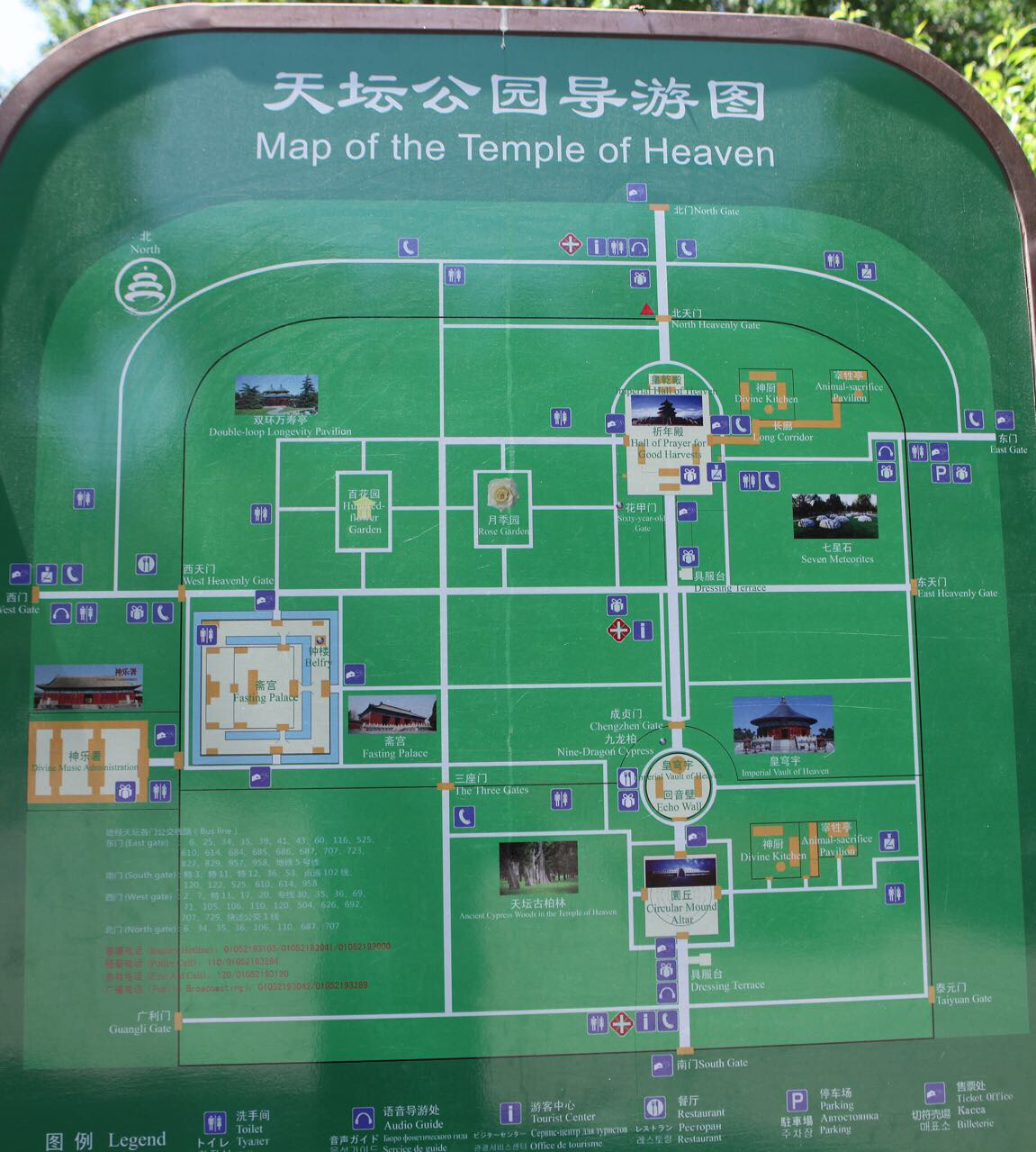 여기까지가 관광가이드에 소개된 부분이다. 책에 없는거 하나만 더 보여 주고 천단공원 종친다. 천단공원에 나무 수종이 대부분 측백나무인데 약 6만그루가 있는데 그중 100년이상 짜리가 3600 그루정도 있다. 옛날 키신저 특사가 첨으로 중국방문해서 천단공원에 들렀는데 고령의 측백나무들을 보고 매우 부러워했단다.