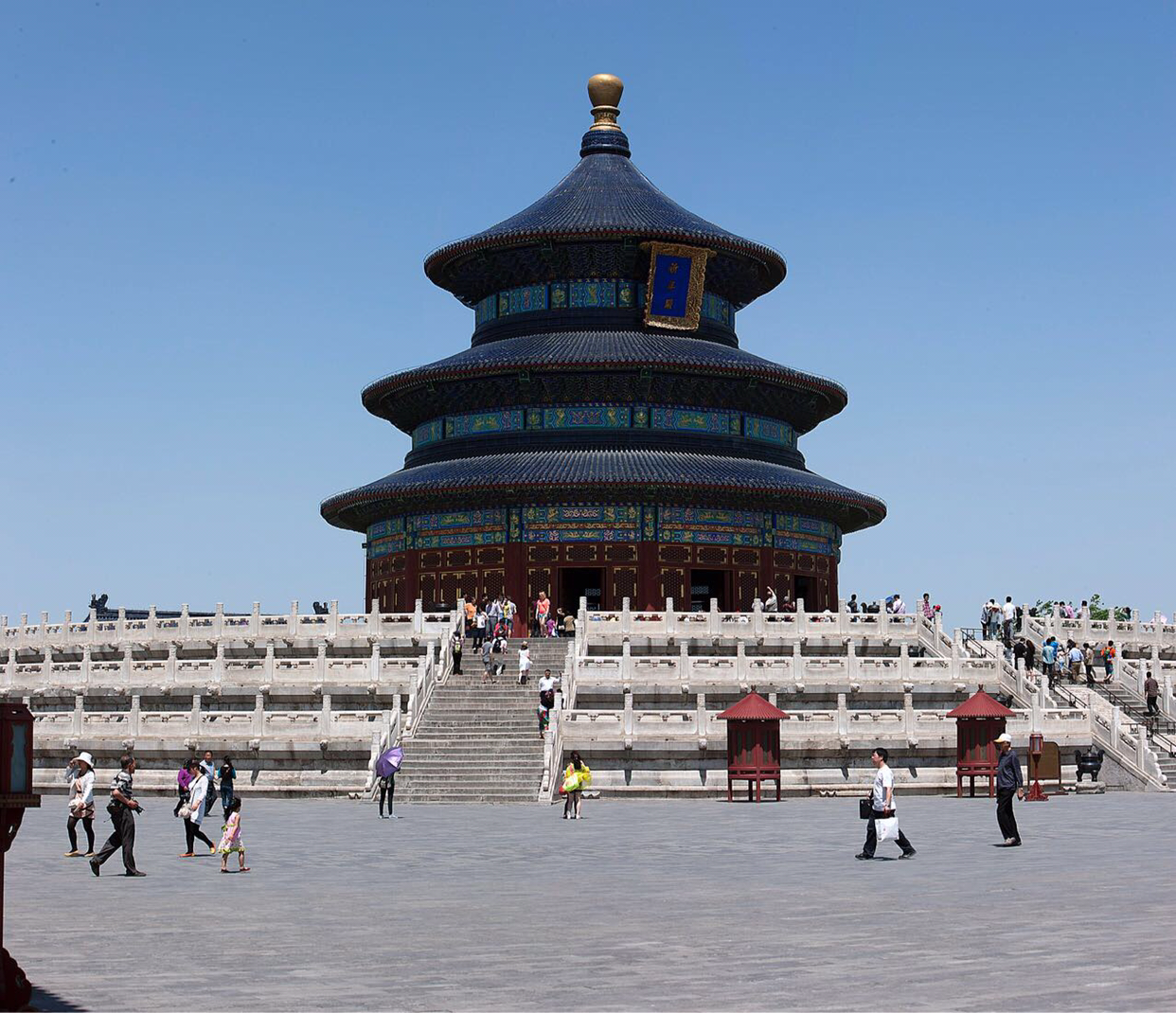 기년전(祈年殿)에서 황궁우(皇穹宇)로 오는 길(황궁우에서 기년전을 보고있다)을 보면 중간에 별도로 대리석으로 길을 만들어 놓았는데 "신도(神道)"라하여 황제만 걸어 갈 수 있다. 그래서 그런지 이를 아는 관람객들은 꼭 중앙으로 황제처럼 걸어 가려고 한다.