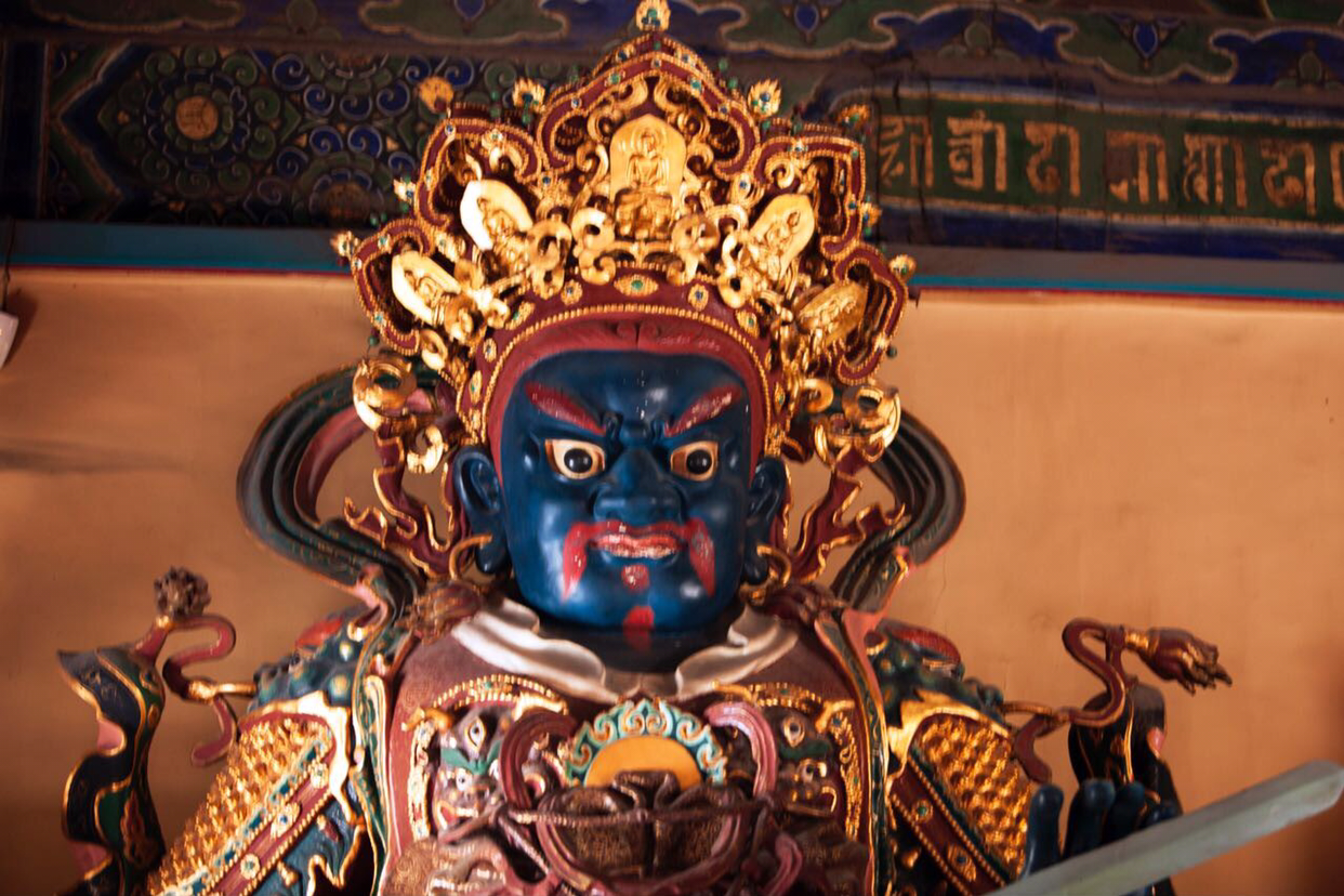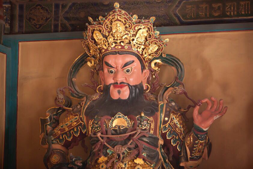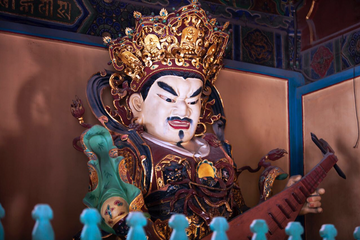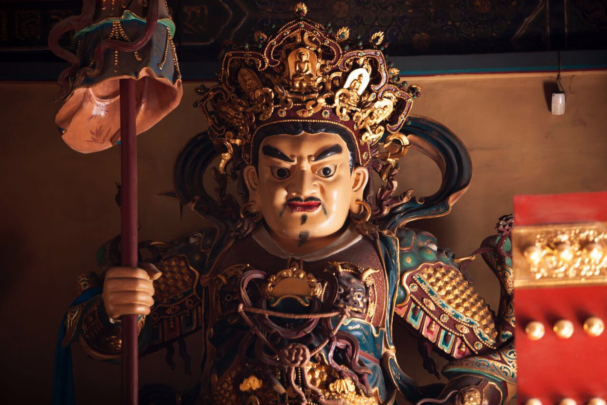 가운데에는 포대화상이 놓여있다. 포대화상은 원나라 때 실존했던 승려로 커다란 포대 주머니에 먹을 것을 넣고 아이들에게 선물로 주었다고 한다. 자비의 상징으로 미륵불의 화신으로 추앙받았다. 중국의 사천왕전에는 이렇게 항상 포대화상이 모셔져있다.