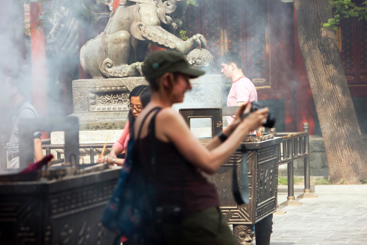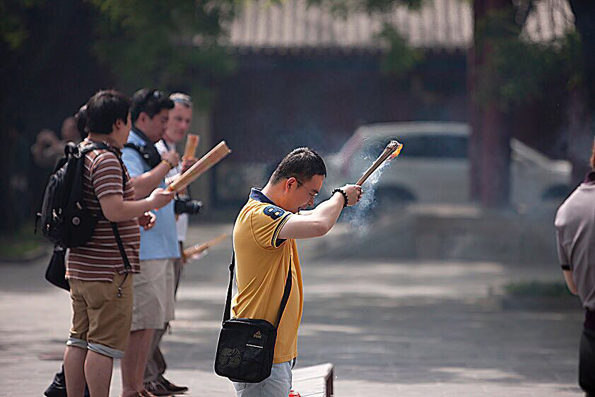 용화문 앞에서 향을 피우고 절을 올린다. 많은 사람들이 손에 향을 한 뭉치씩 들고 들어 가는데 끝까지 따라 가 보면 그 이유를 안다. 한국처럼 대웅전에서 향을 올리는 것이 아니고 여기서는 보살이나 부처가 없는 다른 곳에서도 똑 같이 향을 올리고 절을 하는게 신기하다. 그러니 모두들 한뭉치씩 들고 들어간다.