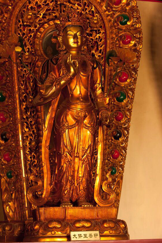 대세지보살. 아미타불의 좌우 협시보살로 위에서 본 관음보살과 대세지보살이 여기에 속한다. 서방정토의 주재자인 아미타불이 자비의 화신인 관세음보살과 지혜의 상징인 대세지보살의 협시를 받는다.
