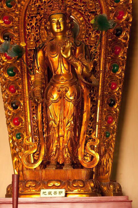 지장보살. 관세음보살과 함께 가장 많이 모셔지는 보살중의 한 명이다. 지장보살의 큰 임무는 석가모니가 입적한 뒤 미래불(미륵불)이 출현하기까지 무불시대에 6도에 빠진 중생들을 교화하고 구제하는 것이다. 육도(六道)는 불교에서 중생이 깨달음을 얻지 못하고 윤회를 거듭할 때 자신이 지은 업(業)에 따라 태어나는 세계를 6가지로 구분한 것으로, 지옥도(地獄道) · 아귀도(餓鬼道) · 축생도(畜生道) · 아수라도(阿修羅道) · 인간도(人間道) · 천상도(天上道)를 말한다.