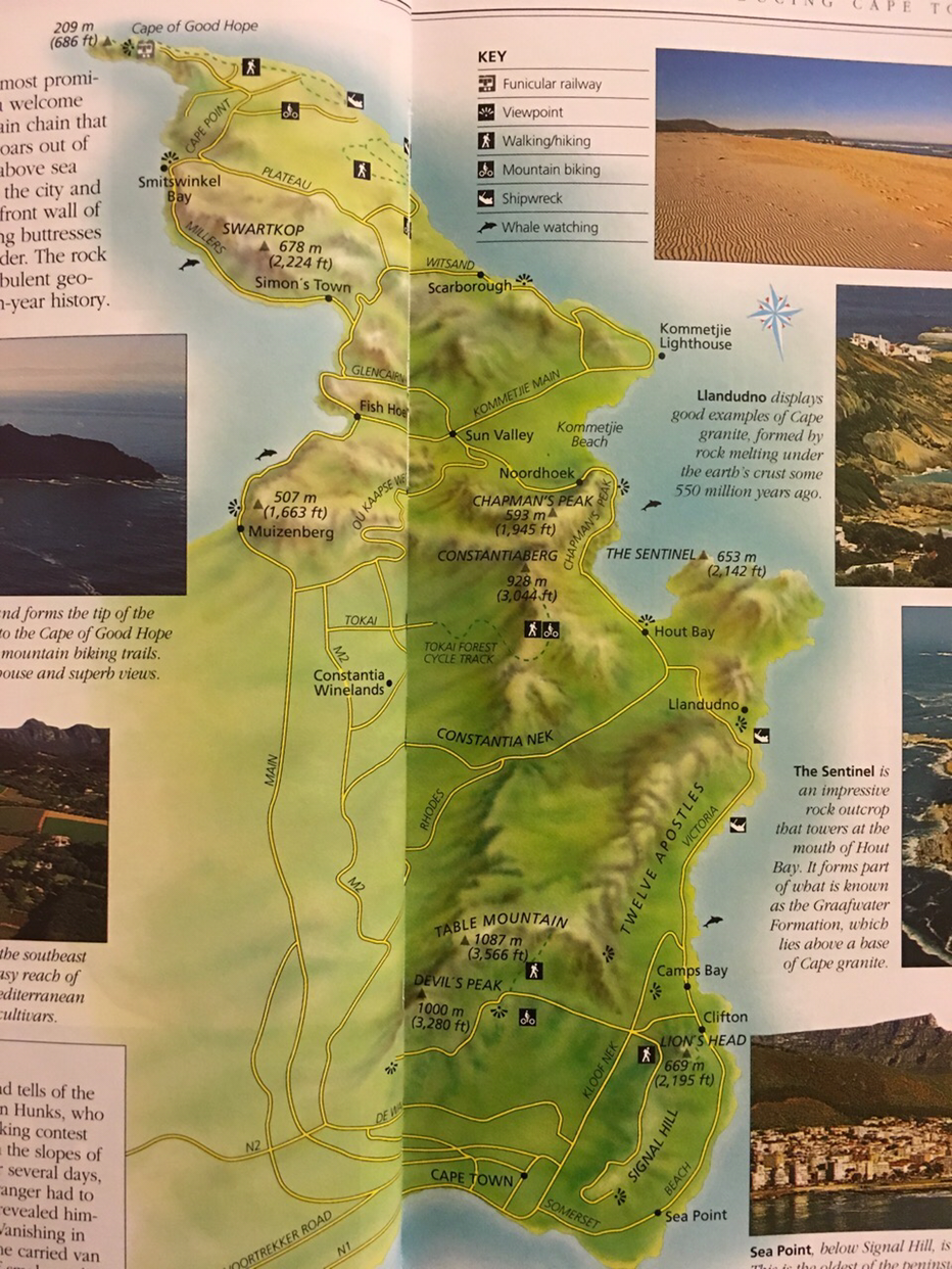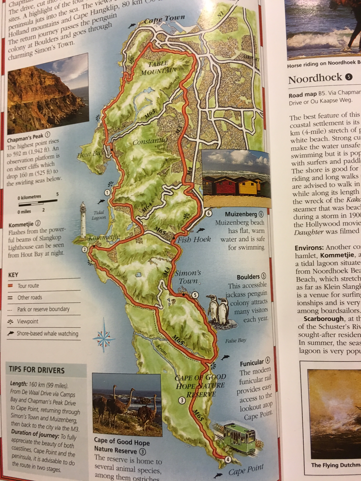 여행안내서의 약도. 기차로 온 Fish Hoek이 보이고 버스로 간 종착역인 Simon's Town도 보인다. 4번이 지금있는