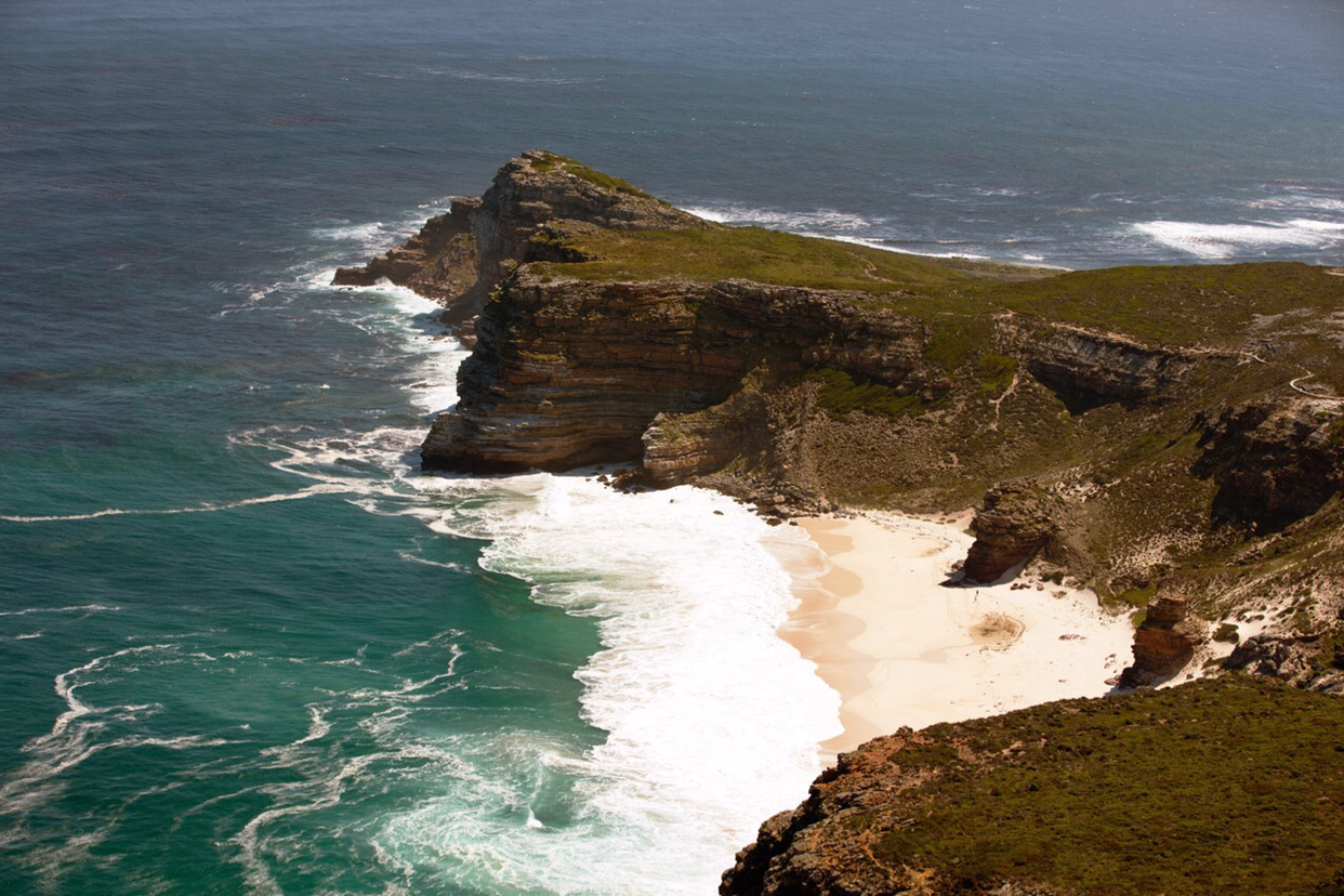 Simon' Town까지 가는 기차선로가 해변을 따라 놓여있다. 기차안 풍경과는 달리 기차밖의 경치는 한마디로 끝내준다. 희망봉은 중앙에 보이는 작은 산의 왼쪽 끄트머리를