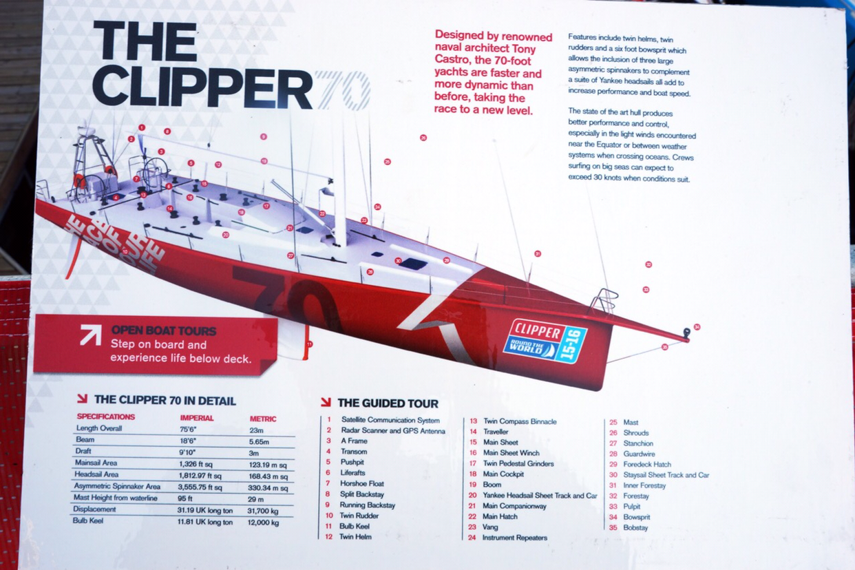 요트에서 말하는 Clipper는 바리깡이 아니고 지금처럼 항공화물이 활성화 되기전 예전에는 배가 많은 화물을 싣고 해상에서 빨리 달리도록 배를 디자인 하였는데 그것을 Clipper라고 불렸던 것이다. Clipper 70은 그렇게 빨리 달리게 디자인된 70피트 길이의 요트로 세계 일주 경기를 크게 8 구역으로 나누어 경쟁하는데 지난 8/30일 영국 런던을 출발해서 브라질 리우데자네이루까지 1차 레이서가 끝났고 2차 레이서가 10/7일 리우데자네이로를 출발해서 남아공 케이프타운까지 마치고 바로 Waterfront에 정박하면서 우리를 만나게 된 것이다. 10/31일 여기를 출발해서 호주 알바니까지 3차 레이서를 펼칠 예정이다. 요트로 세계 5대양 6대주를 돈다는 것을 생각만 해도 심장의 피가 보글보글 끊는 소리가 나는 것 같다.