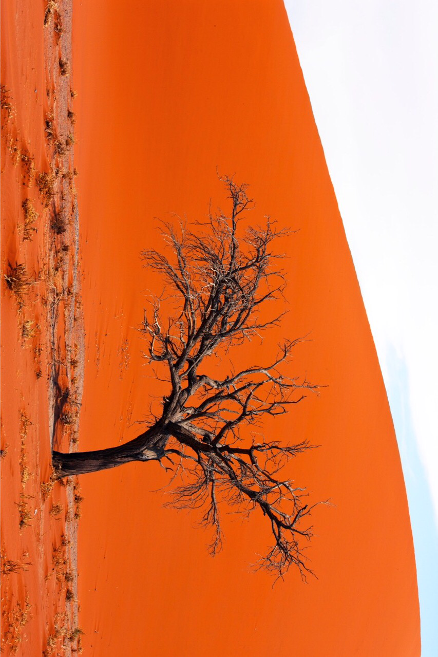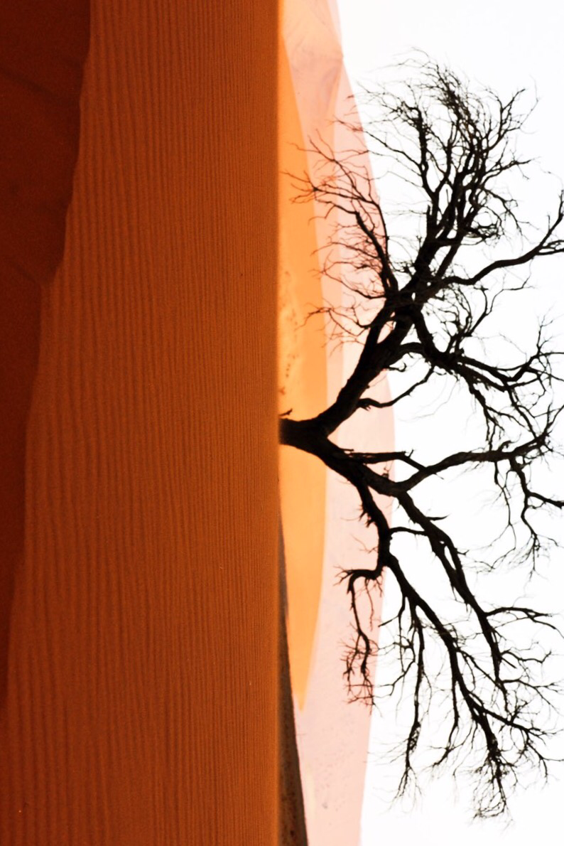 악을 써며 발자국이 난 처음 언덕을 미끄러지며 겨우 올라섰더니 그 앞에는 저만치 또 다른 언덕이 기다리고 있었다. 그리고 내가 그토록 바랬던 새로운 구도의 모래언덕은 없었다. 그 순간 더 이상 이대로 전진하면 지노가 용병도 아닌 전문 사진가도 아닌 풋내기 배낭 여행자로 직업군인인 프랑스 용병들이 사하라 사막에서 하나 둘씩 쓰러지는 것처럼 나도 나미브 사막에서 전사할 수도 있겠다는 생각이 밀물처럼 밀려들기에 오늘 찍은 사막 사진을 고국 밴친과 친구들에게 꼭 보여줘야겠다는 생각을 하면서 점점 머리부터 희미해지는 의식을 잃지 않으려고 자꾸 딥퍼플의 그 노래를 부르며 처음에 올라 갔던 언덕을 다시 천천히 뒷걸음쳐서 내려왔다. 모래사막에 한발 한발 내딛는 것이 그렇게 큰 고통인줄은 예전엔 미처 몰랐다. 양어깨에 맨 카메라의 무게와 뜨거운 모래사막 밑에서 올라오는 복사열과 머리위로 쏟아지는 강렬한 햇빛으로 몸이 연체동물처럼 흐느적흐느적거리며 금방이라도 앞으로 쓰러질 것 같았다. 그래도 비싼 카메라때문에 모래사막에 엎어지지 않으려고(모래들어가면 카메라 조지니까) 안간힘을 쓰면서 한발 한발 모래밭을 내디디며 간신히 파킹장으로 돌아 올 수 있었다.