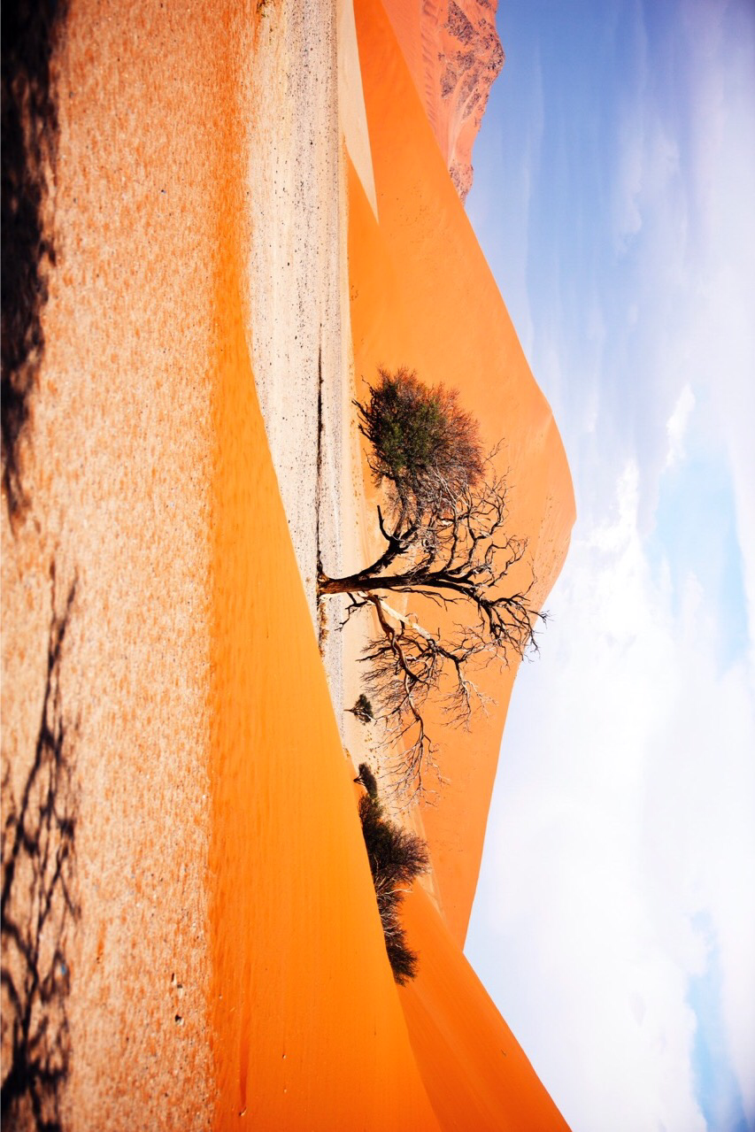 우선 제일 먼저 가고 싶은 곳이 Dune 45였다. 왜 이 이름이 모래언덕45냐 하면 공원입구에서 45km 떨어진 지점에 있기 때문이다. 45km 달려 가보니 정말 모래언덕 45가 사진에서 보았던 그 모습보다는 쪼매(조금) 시들어 가고 있었다. 왜 그럴까하고 곰곰이 생각해보니 날이 갈수록 Dune도 늙어 가겠지. 그리고 더 큰 이유는 룸살롱에서 찾았다. 바로 화장빨이다. 이쁜 얼굴에 윤기가 촉촉히 흐르는 피부를 가진 아가씨가 10% 룸살롱 아가씨보다 하나 떨어진다하면 노래가사처럼 "립스틱 짙게바르고" 와 안바르고 그 차이인 것이다. 내가 지금까지 그렇게 화장한(뽀샵이라고 하는데 Photoshop의 줄인말이다) 사진만 보고 왔기 때문에 지금 내 앞에 앉아 있는 오늘 처음으로 맞선보는 dune45가 초혼이 아니고 재혼 맞선보러 온 처자처럼 인물이 쪼매(조금) 떨어진다는 소리이다.