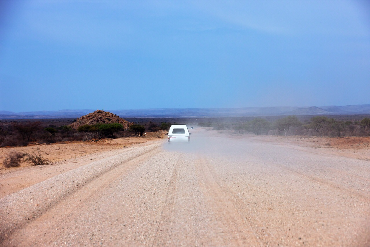 내가 오기 전에 인터넷에서 본 그 멋진 사진을 생각하며 편도 6시간으로 왕복 12시간을 운전한 셈이다. 오늘 아침 7시에 출발해서 저녁 10시경에 돌아왔다. 여기에서 최고의 관광지 Namib Laukluft Park안에 있는 Sossusvlei라고 하는 곳이 목적지인데 여기서부터 사막이 시작되기 때문이다. 차 운전 시간이 그렇게 오래 걸리는 이유는 여기 도로사정이 별로 좋지 않기 때문이다. 거리는 약 500km 정도인데 1시간 30분 정도 고속도로로 달리다가 그 다음부터는 전부 비포장도로를 달리는데 그것도 후반부터는 꼬불꼬불한 산길을 타고 가는데 비포장도로라 앞 차가 달리면서 만들어내는 먼지투성이를 따라가는 뒷차가 완전히 바가지써야 한다.
