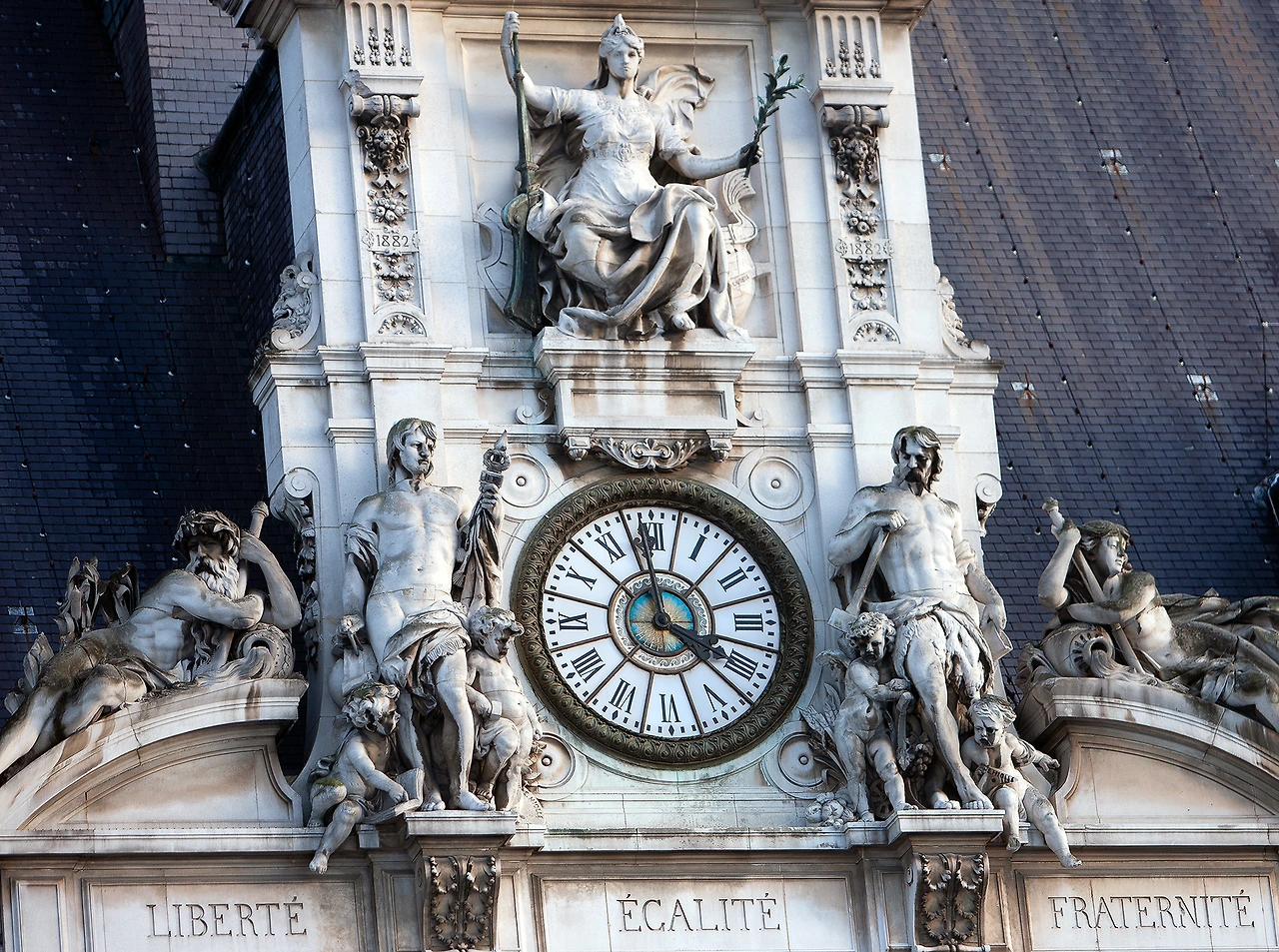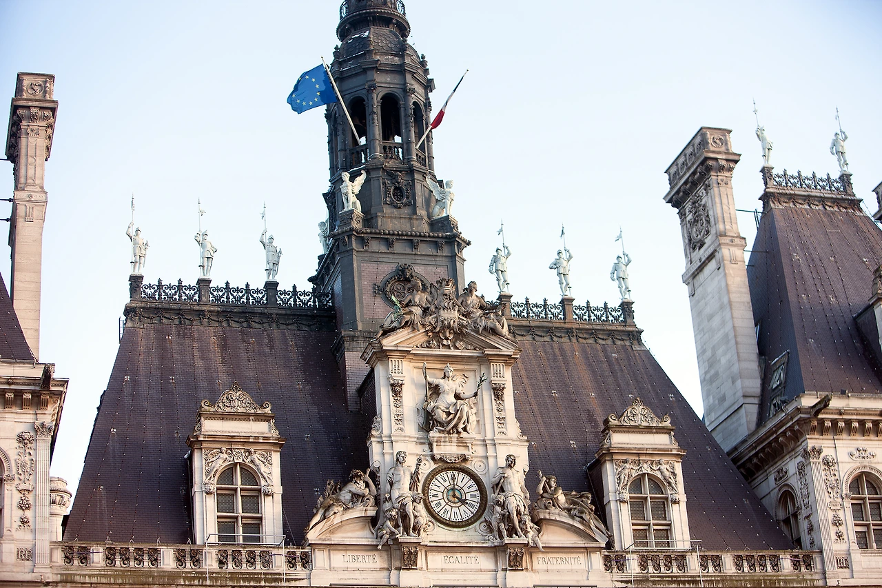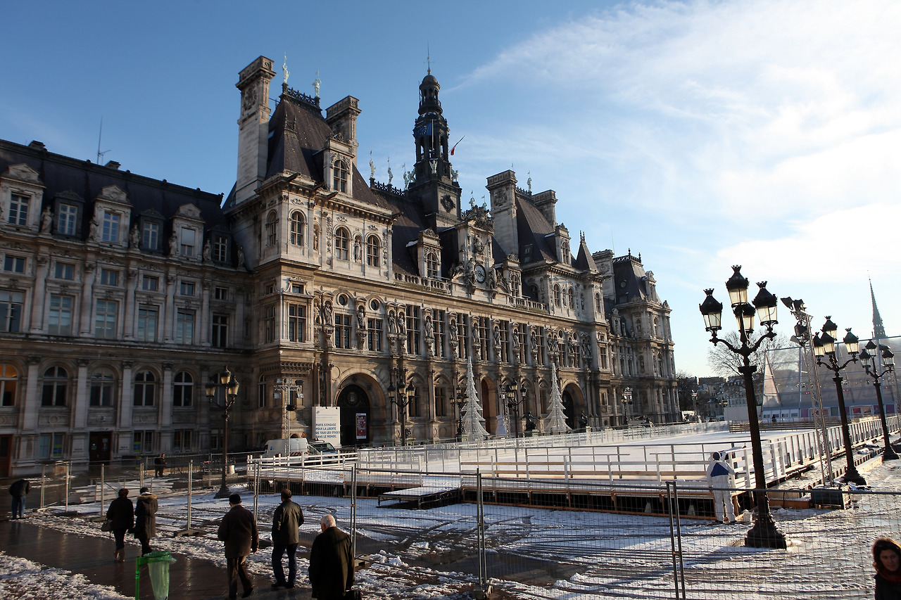 17세기에 건축된 빠리시청사로 1871년 화재로 전소되어 그 후에 재건하였다. 건물 외벽 곳곳에 장식된 조각상이나 치장물이 빼어나 아름다운 건축물로 유명하다. 옛날에는 청사 앞 광장에서는 사형수를 공개 처형하였고, 마녀 사냥 같은 화형식도 이곳에서 행하여졌다고 한다. 시장들의 공식적인 업무를 보는 곳이며 동시에 거주지로 여기서 살았다고 하는데 현 시장은 여기에 살지 않고 다른 곳에서 살면서 출퇴근하는 모양이다.