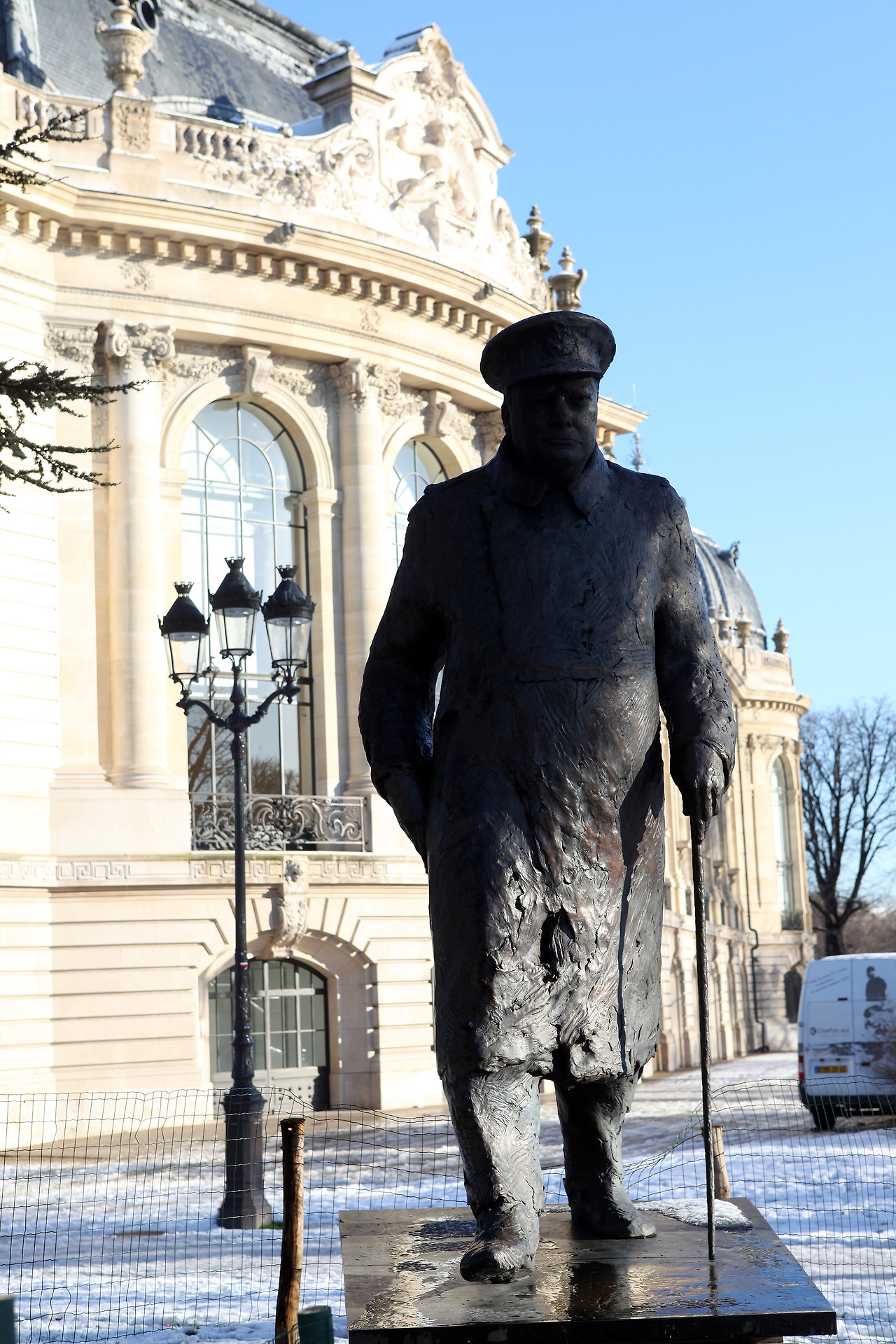 건물 옆에 영국 처어칠 수상의 동상이 서 있었다. 왜 그가 여기 쁘띠빨래에 서 있는지?