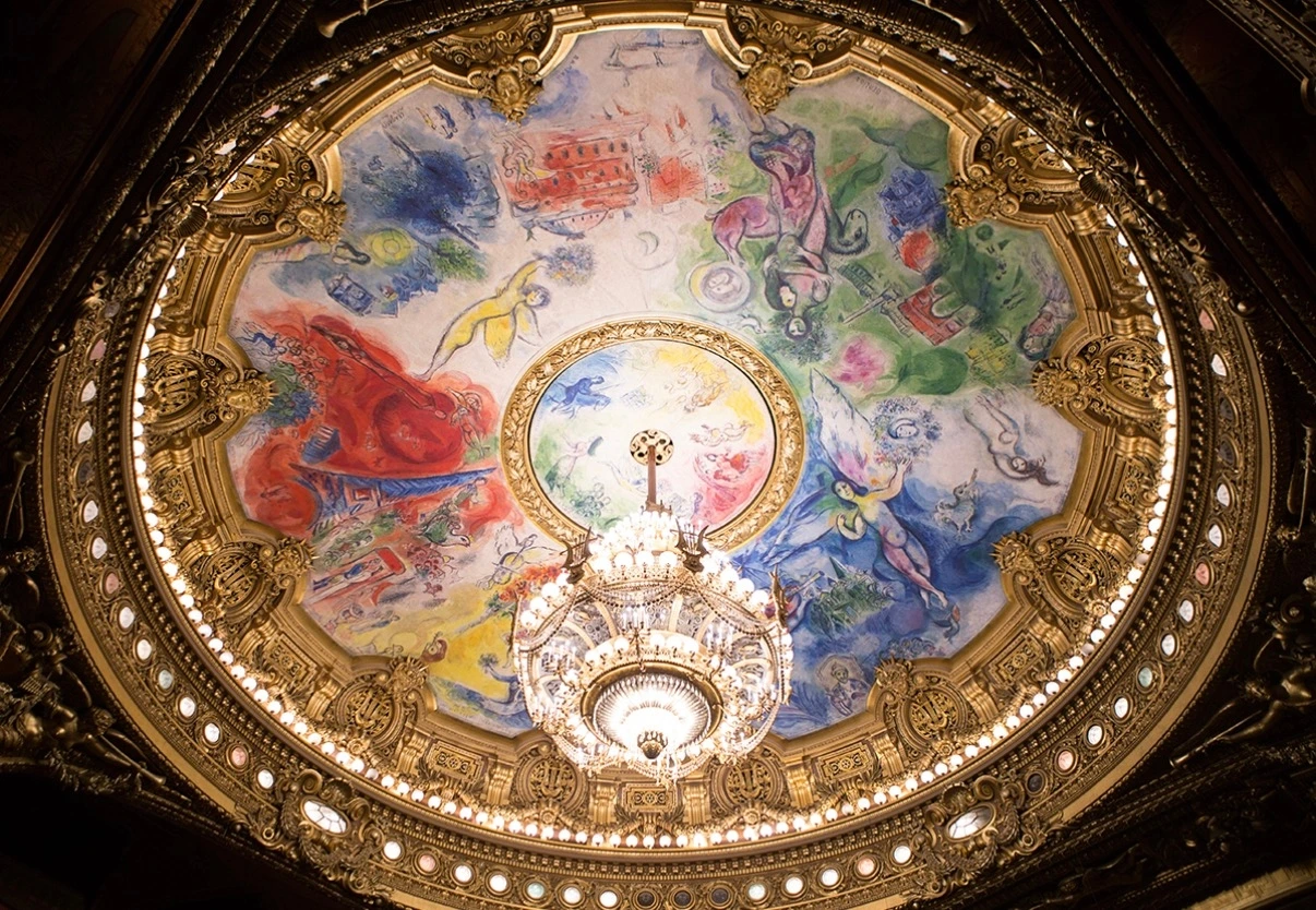 샤갈의 천정화에 대한 일화로 프랑스 초대 문화부 장관이었던 유명 작가 앙드레 말로가 파리 오페라 가르니에의 천장화를 샤갈에게 부탁하였다. 그러자 샤갈은 프랑스를 너무나 사랑했기 때문에 이 작업을 무보수로 맡아 천장화를 완성하였다. 국가의 기념적인 천장화 작품을 고작 러시아계 유대인에게 맡긴 것에 약간의 비난이 있었지만, 지금은 이 작품을 보기 위해서 오페라 가르니에를 방문할 정도로 많은 이들에게 사랑을 받고 있다.