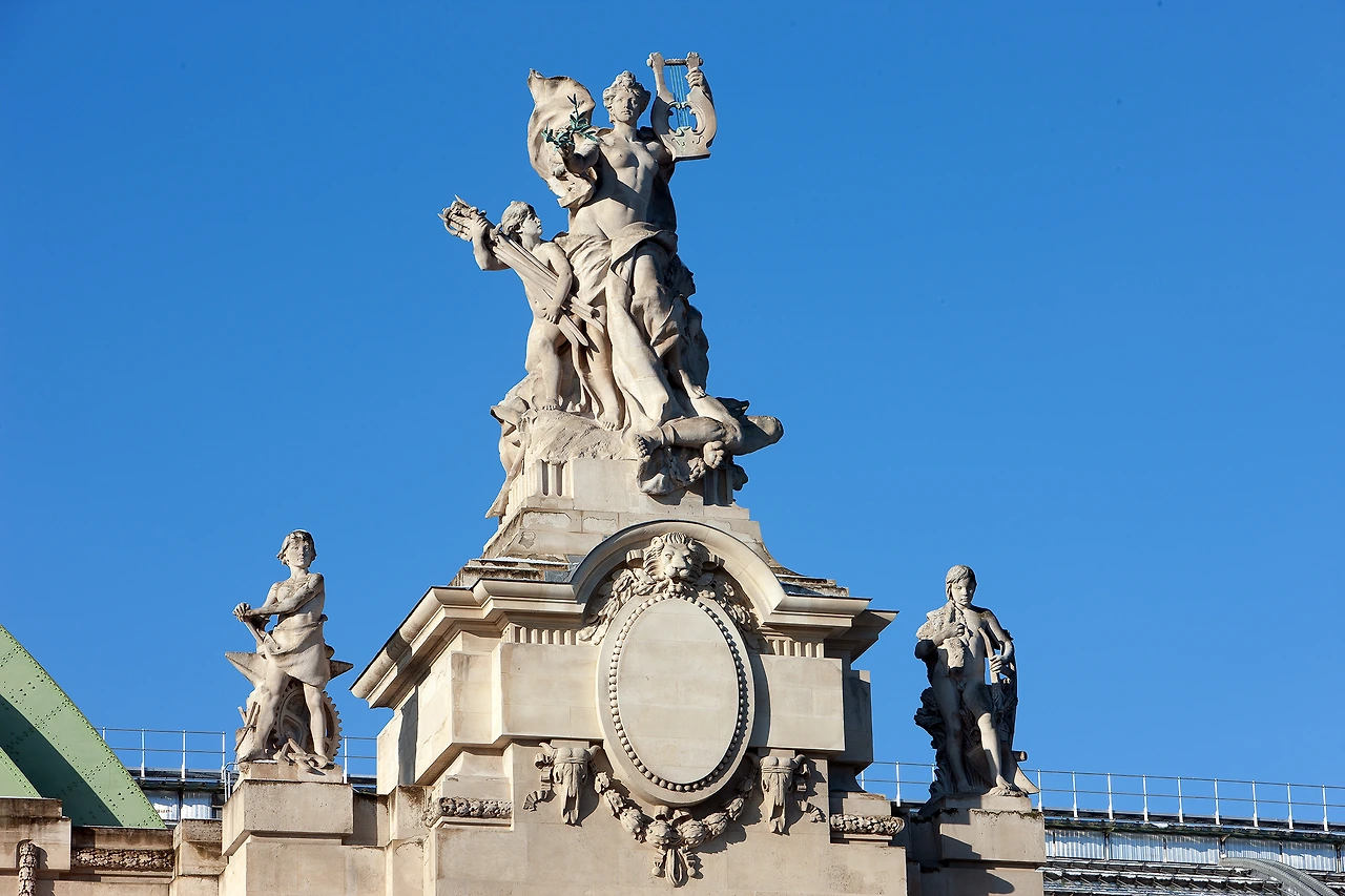 1900년 빠리 만국 박람회 목적으로 건축한 박물관 및 전시장으로 전체 지붕을 전부 유리와 철제로 만든 것이 유명하다. 여기에 소요된 유리 무게가 에펠탑 전체 철근 무게보다 500톤이 많은 8500톤이라고 하니 그 규모가 어마어마하다. 이 건물의 지하를 빠리 경찰서 본부가 임차하고 있다고 한다.