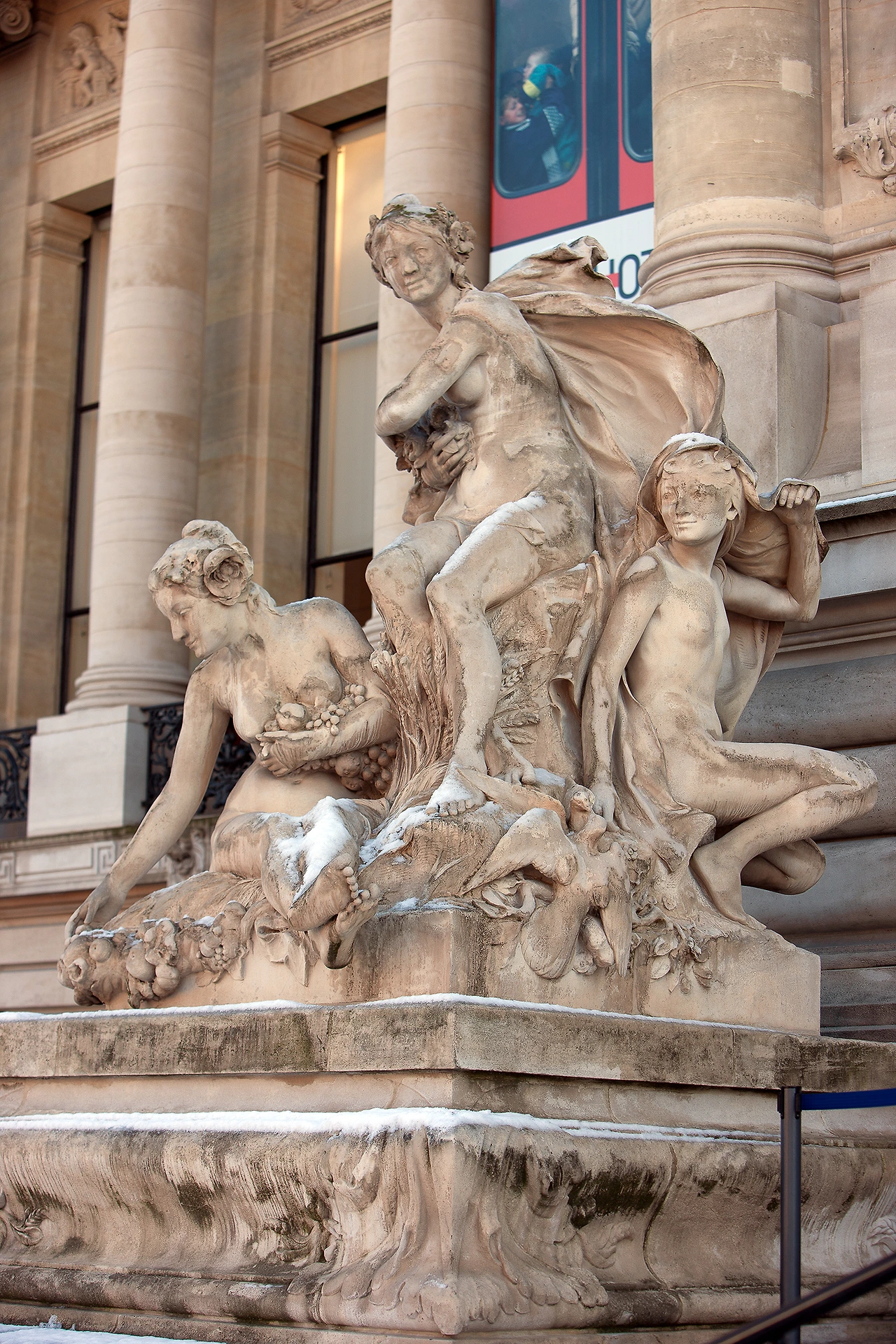 정면 출입구 양쪽으로 나체 조각상 두 점이 빌딩을 지키고 있다. 벌거벗은 나체로 조각상틀 만들어야 우아해 보이는 것일까?
