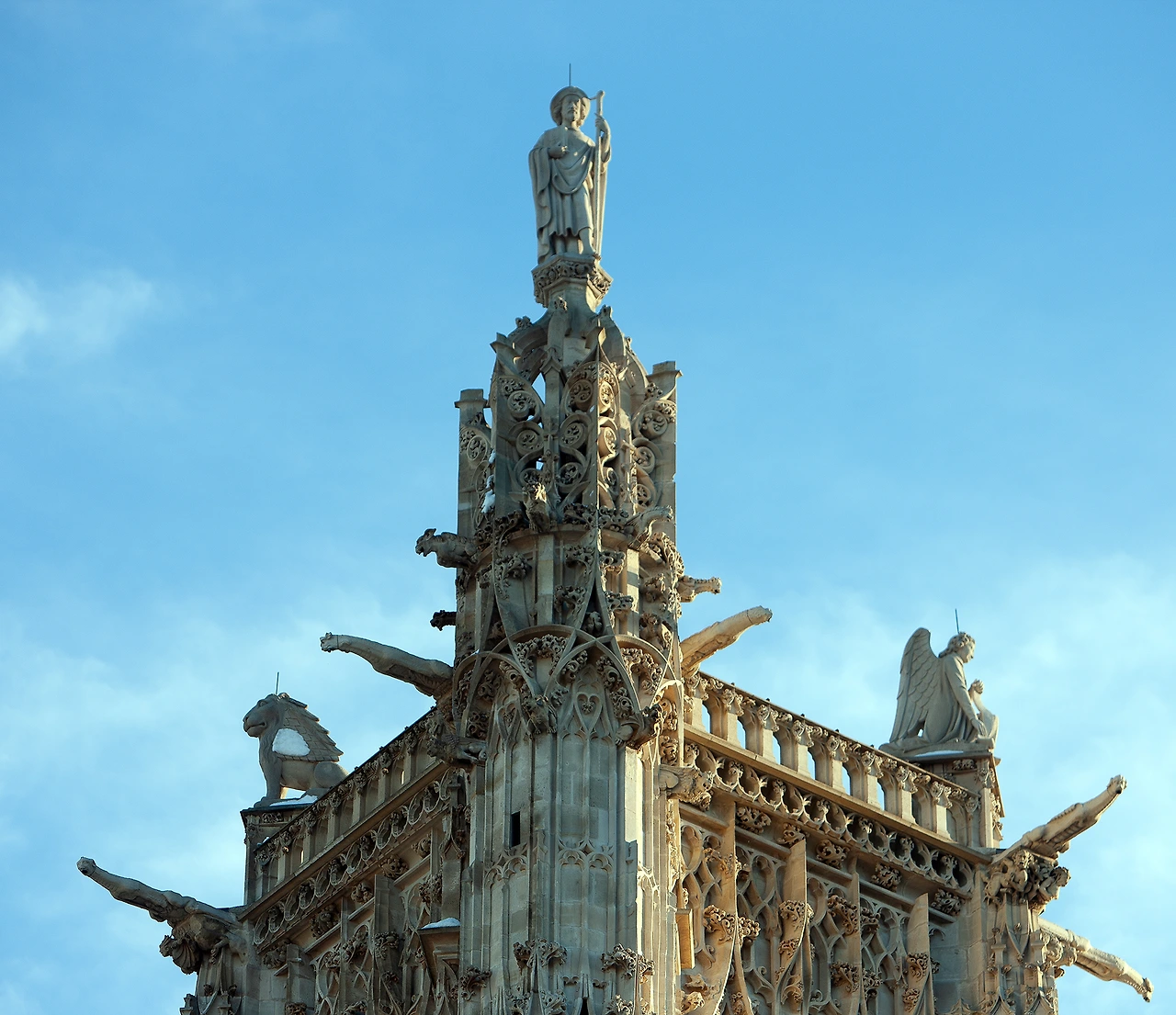 복음 전도사의 상징을 탑 꼭대기에서 찾아보았는데 사람과 사자 상은 찾았는데 독수리와 황소 상은 찾지 못했다. 아마 다른 쪽에 있는 모양이다. - JH -
