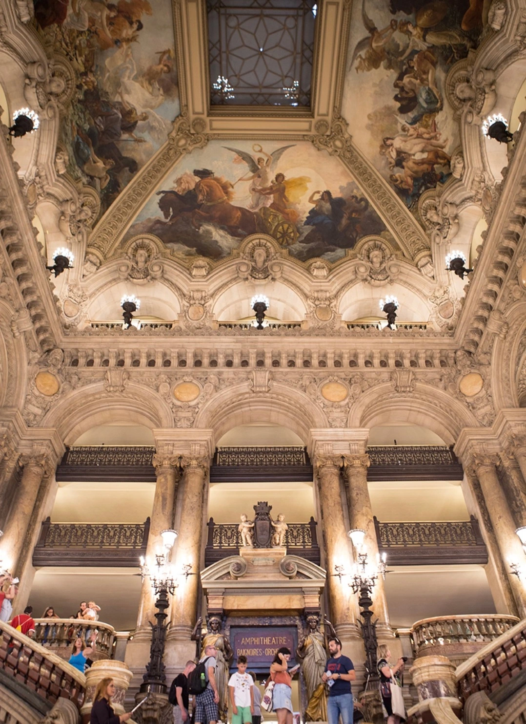 연회장 GRAND FOYER(휴게실 로비)로 오페라 가르니에에서 가장 화려한 곳이다. 길이만 무려 154미터, 폭이 13미터, 높이가 18미터인 매우 웅장하고 화려한 공간으로 관람하러 온 상류층들이 서로 어울리거나 휴식을 취하는 장소이다. 사람들이 종종 여기를 베르사유 궁전의 <거울의 방>과 비교하는 모양인데 어느 곳이 더 화려하게 치장되어 있는지를 가늠해보는 모양이다.
