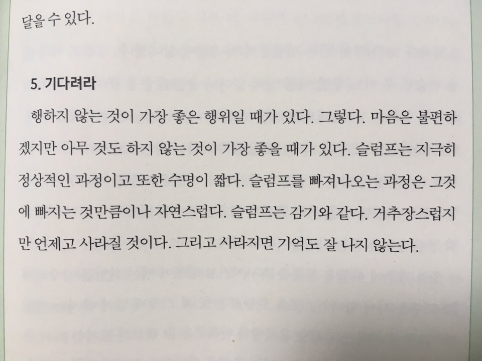 그대도 알고 있다. 언젠가 슬럼프는 사라진다는 것을. 그 시간을 마냥 기다리는 것이 불안할 수 있다. 나도 그랬다. 우리는 발버둥 쳐도 빠져나가기 힘들다는 것도 알고 있지 않은가? 그렇기 때문에 기다리자는 것이다. 슬럼프에서 허우적거리는 나와 그대여. 우리는 잠깐 뒤처졌고, 곧 스파크가 번쩍이는 순간이 다시 찾아올 것이다. 그러니 용기를 내자. 자신에게 기다림의 시간을 줄 수 있는.