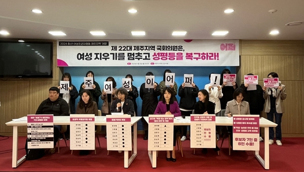 얼마 전 끝난 총선에서는 여성주권자행동 제주지역 '어퍼'가 제22대 국회의원 선거에 출마하는 후보자들에게 평등하고 정의로운 젠더 관계를 위한 기자회견에 참여하기도 했다.