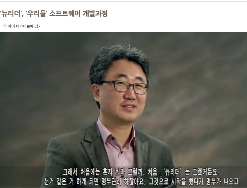 그는 소프트웨어를 만들고 싶다고 했다. ‘뉴리더 새 버전 구상’이라는 문서를 가방에서 꺼냈다. 자신이 원하는 소프트웨어에 대한 구상이 빼곡히 쓰여 있었다. 애초에는 대학생들에게 부탁해 제작해보았는데 결과가 만족스럽지 않았고 큰 기업은 의뢰를 거절했다고 했다. 신씨는 노무현 변호사가 건넨 문서를 보자마자 도전 욕구를 느꼈다. ‘뉴리더’는 일정, 개인·단체 정보, 문서 관리는 물론 정보와 메시지 공유 등 사용자 간의 소통을 가능하게 하는 일종의 인맥 관리용 프로그램이었다. 신씨는 “이제 와서 생각해보면 그의 구상은 ‘웹 2.0’이었다”라고 말했다.
