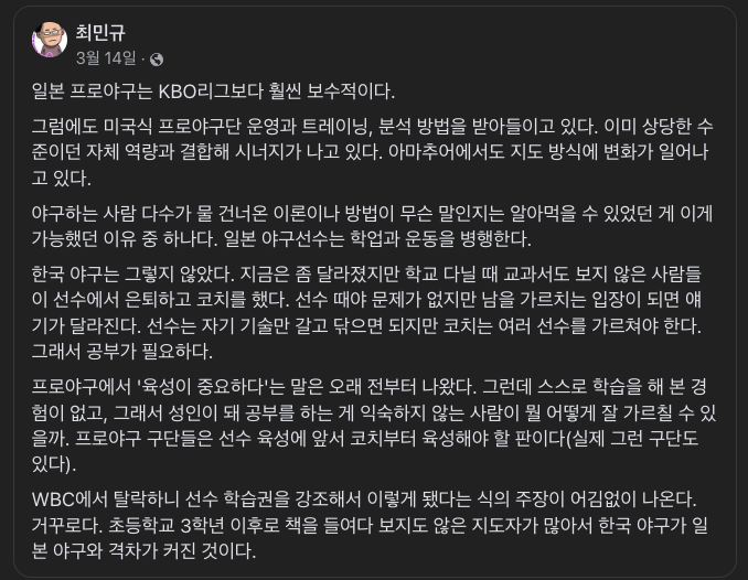 역시나 길지만.. 의미가 깊은.. 요새 결국 1. 리더가 어떤 성취를 해왔는지를 확인하고 뽑고 2. 책임을 정확하게 묻고 3. 합리적이지 않은 의사결정을 할 수 없게 시스템을 만들어야만 천수답 정치, 어쩌다 좋은사람이 와야 뭐가 되다가 이상한 사람이 나와서 싹 말아먹는, 그만할 수 있다. 한가지 확실한건, 인간에 대해 긍정적인 한국식 문화에서는 인간에 대해 악하다 생각하는 서구식 인사조직론을 설명/도입하기가 영 쉽지많은 않네…