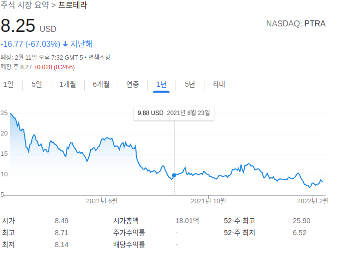 2월부터 내가산주식들은 계속 내리막을 걸었고 전고점 대비 9천만원정도의 손실을 입게된다. 왜 주식을 공포심에 패닉셀하는 지에대해서 깨닫게되었던 기간이었다. 내가처음투자했던 MSFT같은 좋은주식이라면 떨어질때 기분좋게 추매할수있었겠지만 내가산주식들은 단기간에 조금더 높은 수익률을 내기위해서 들어갔던 미래의 꿈만 PDR로 측정하던 성장주들이었다. 내스스로도 좋은주식이아니란 걸 알았기때문에 이 당시 정말힘들었었다. 이때당시 정말 내가할수있는건 기도하는것밖에 없었다. 다행히도(?) 4월에 군대에 입대하게 되는데 핸드폰을 아예할수없고 보지않았기때문에 버틸 수 있었던것같다. 기도메타의 힘인지 운좋게도 단기적으로 주식들이 반등했고 고점대비 -2000만원정도로 근본,우량주를 버리고 개잡주를 샀던 손해를 만회할수있었다. 12월말에 세금절약용으로 프로테라(PTRA)일부를 제외한 2021년 초에 저질렀던 욕심의 잔해들을 처분해버렸다. 지금도 항상 계좌를 보고 매수하려고할 때 한번더 생각하고 반성하기위해서 내가 손해보고 팔았던 주식프로테라(PTRA)의 일부를 계좌에 남겨두고있다.