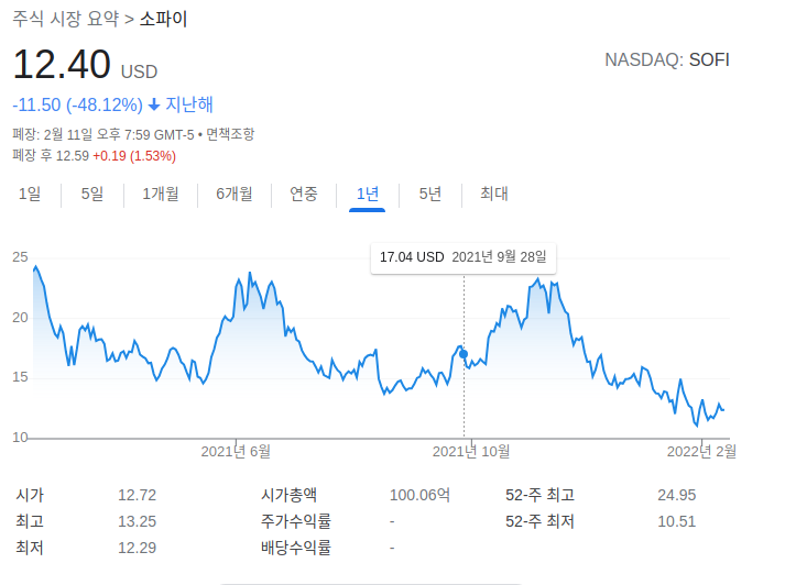 글을쓰고있는 2022년2월12일의 주가