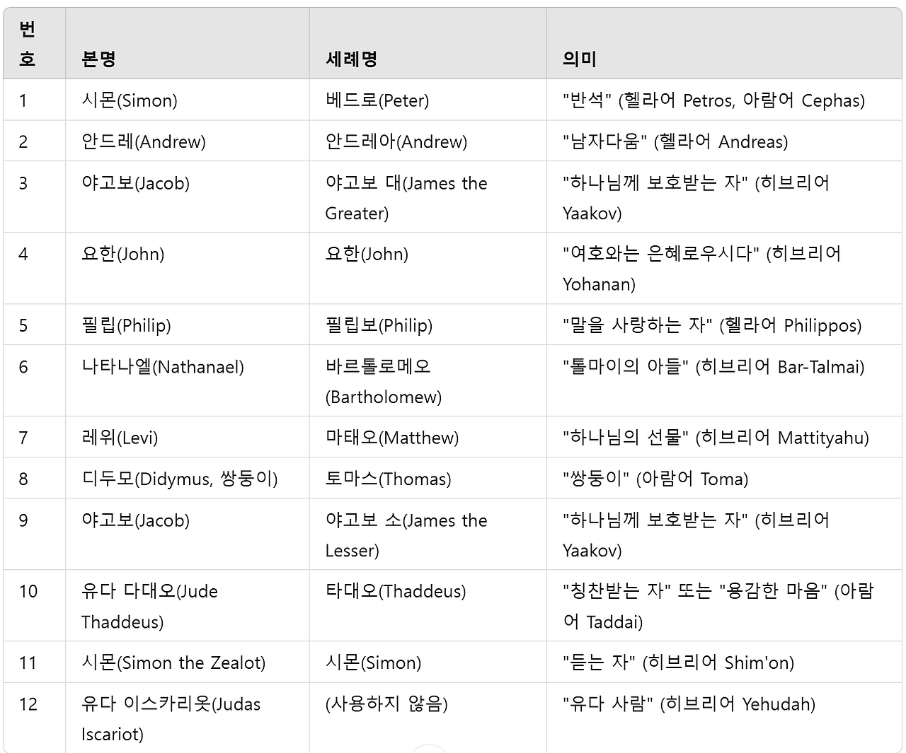 본명 : 요셉(Joseph, 히브리어: יוסף, Yosef) 세례명 : 바나바(Barnabas) 의미 : 위로의 아들